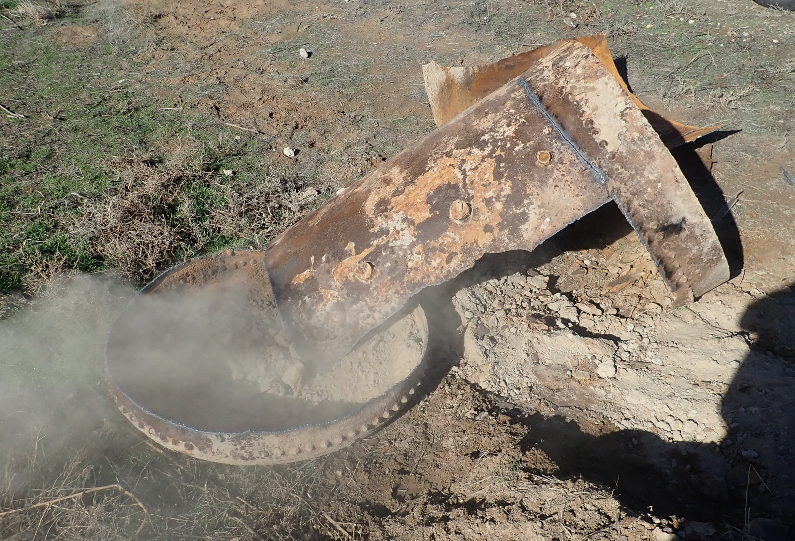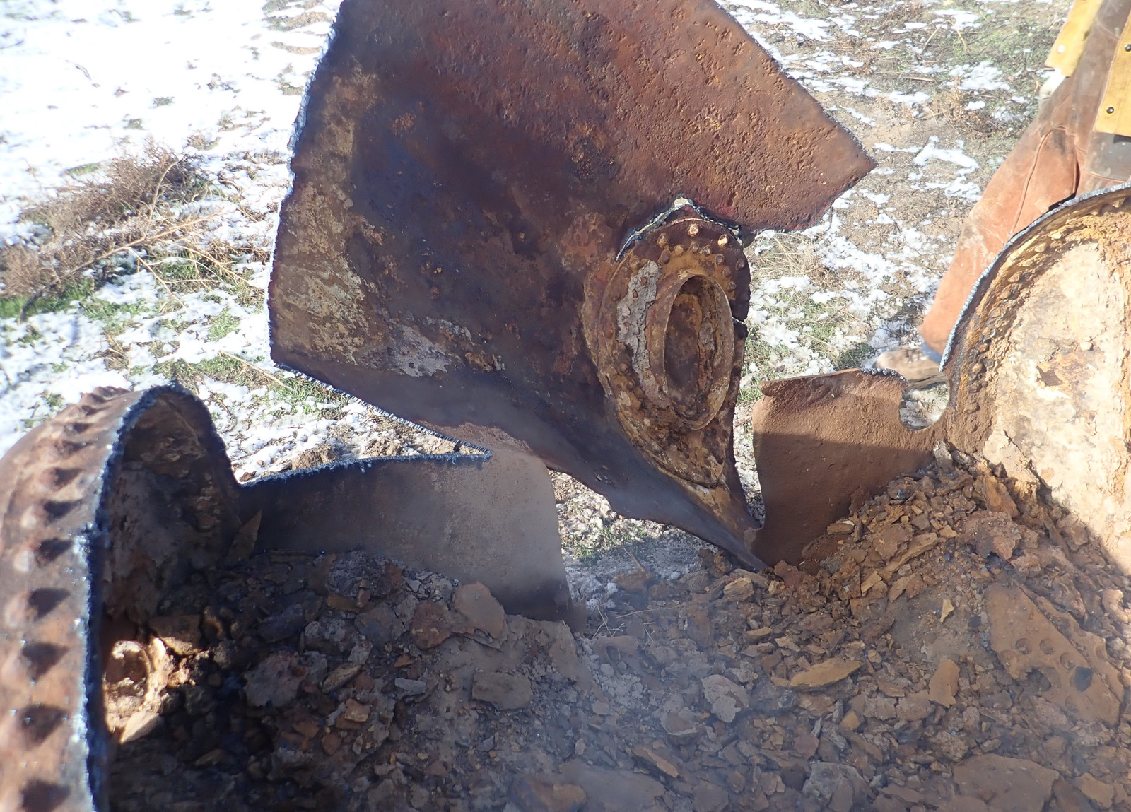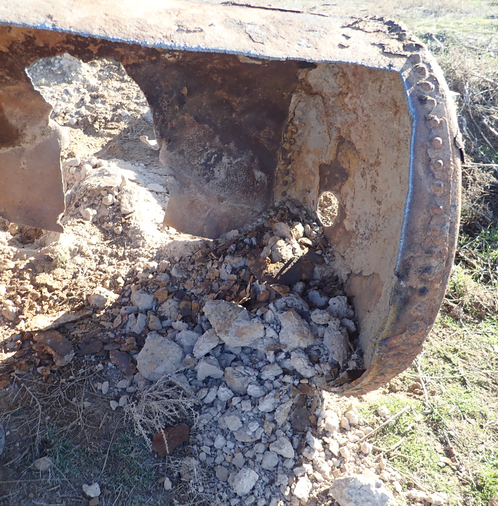 However, once upside down, a couple good blows with a sledgehammer freed up a lot of the remaining rock and dirt in it!