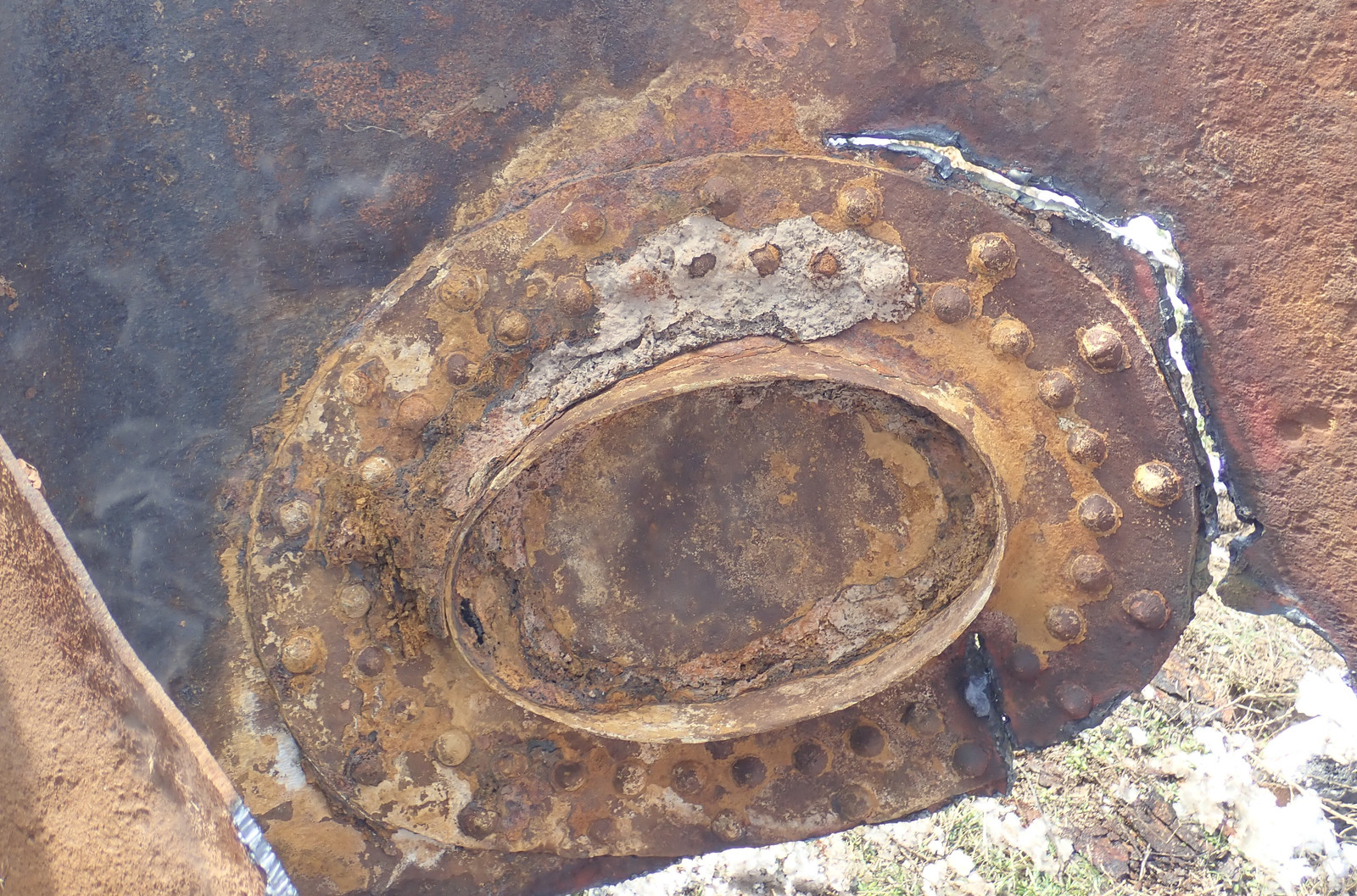 This tank is from before things were welded together - it’s proper ancient boilermaking. This access port is a large metal flange, riveted in place. I have to assume the people who were inside the tank didn’t have hearing protection when this was built, which just sounds awful. Literally!