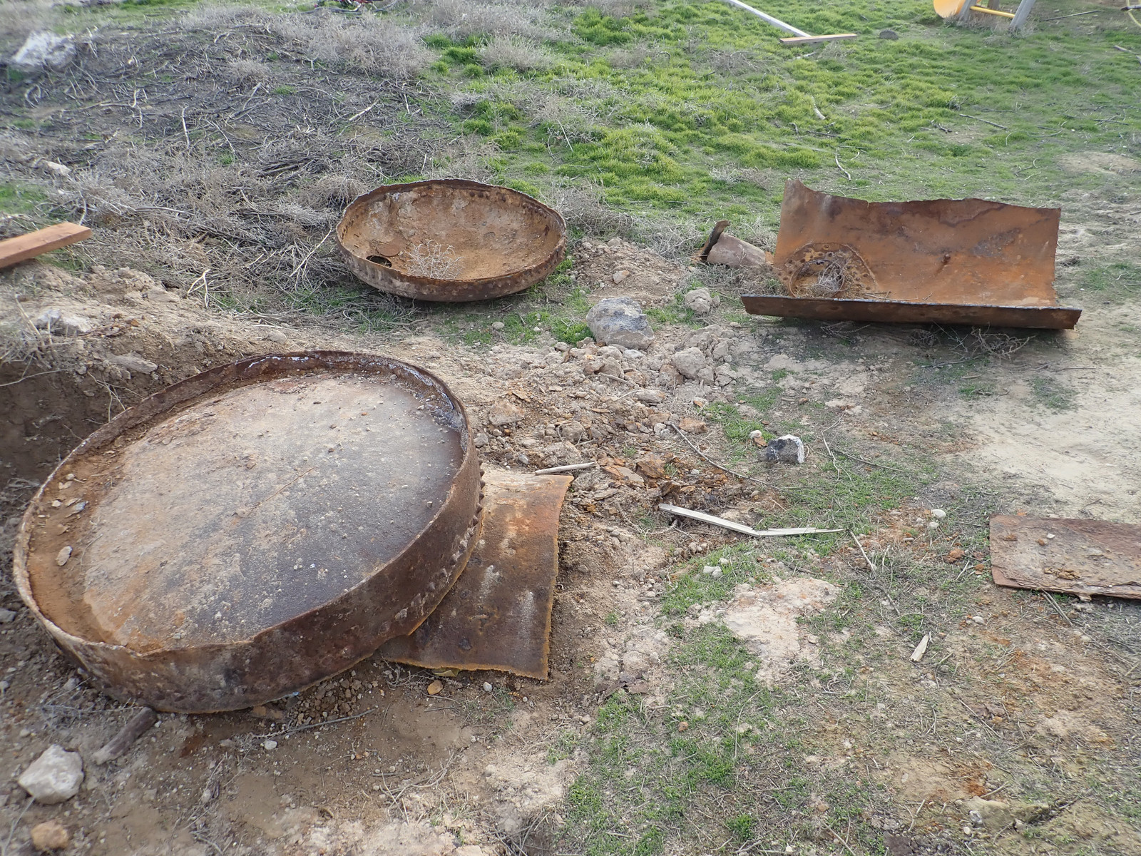 It’s gone! The rusted out septic tank that’s been part of our property for years is finally gone to the scrap yard!