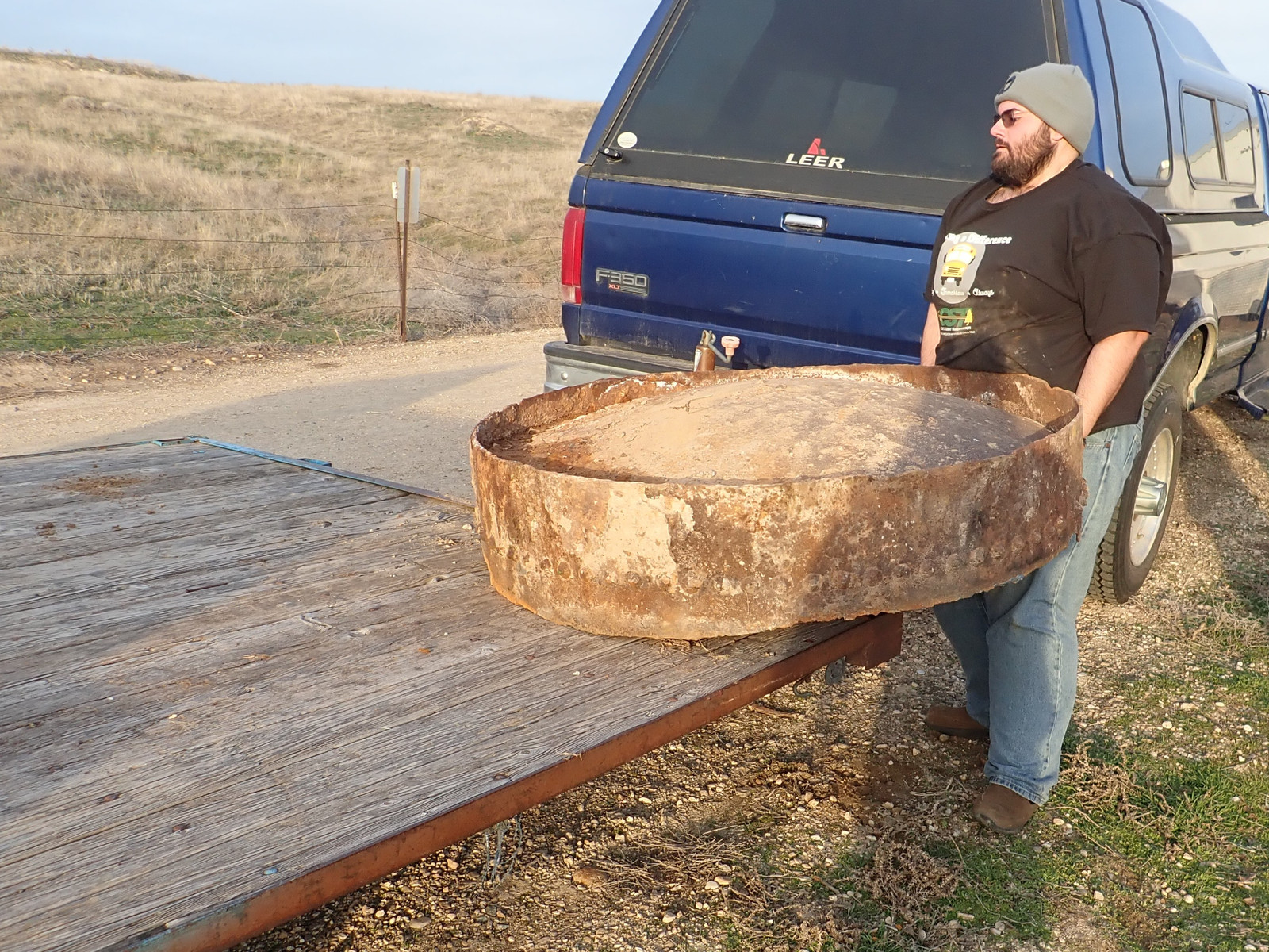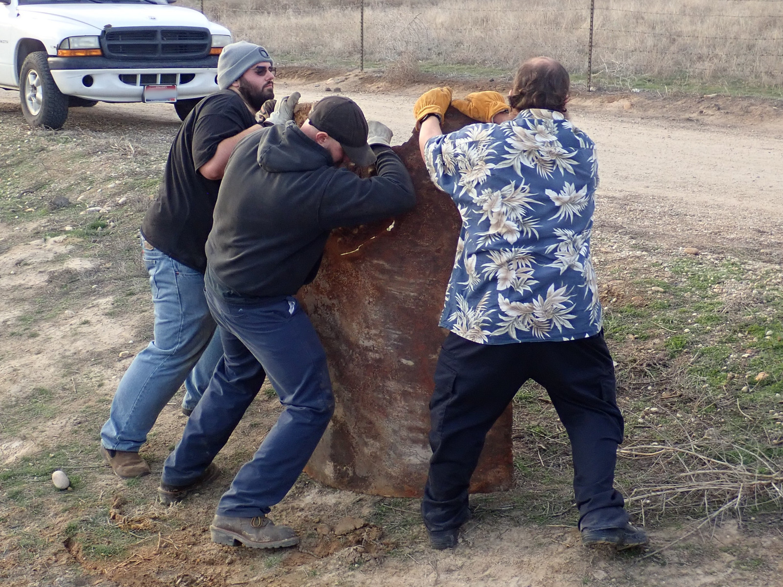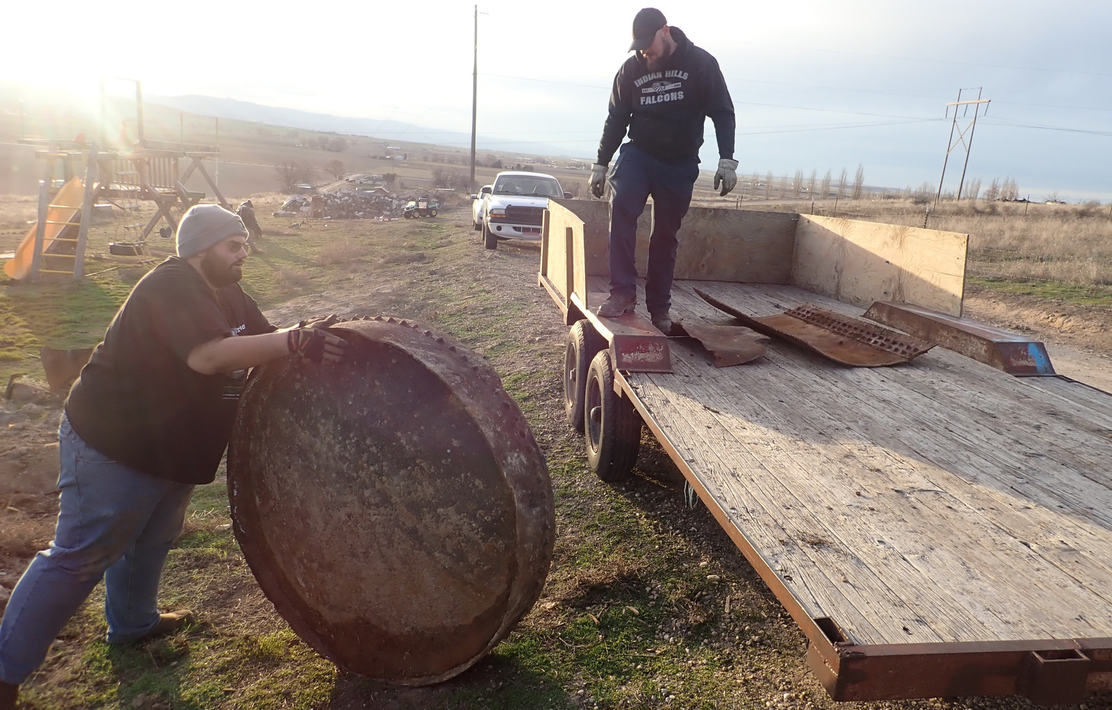 Unfortunately, instead of being “one tank laying around,” it’s now “a lot of pieces of tank laying around.” And that is best solved by a run to the scrap yard. As much as “random ancient plate iron” might be useful to some people, it’s not useful to me, the iron is not in good shape, and I just want it gone. Pieces were sized to be loadable by “a few guys lifting” - so, one particular Monday evening lifegroup after things had dried up, I brought the trailer up, handed out work gloves, and a few people got to work.