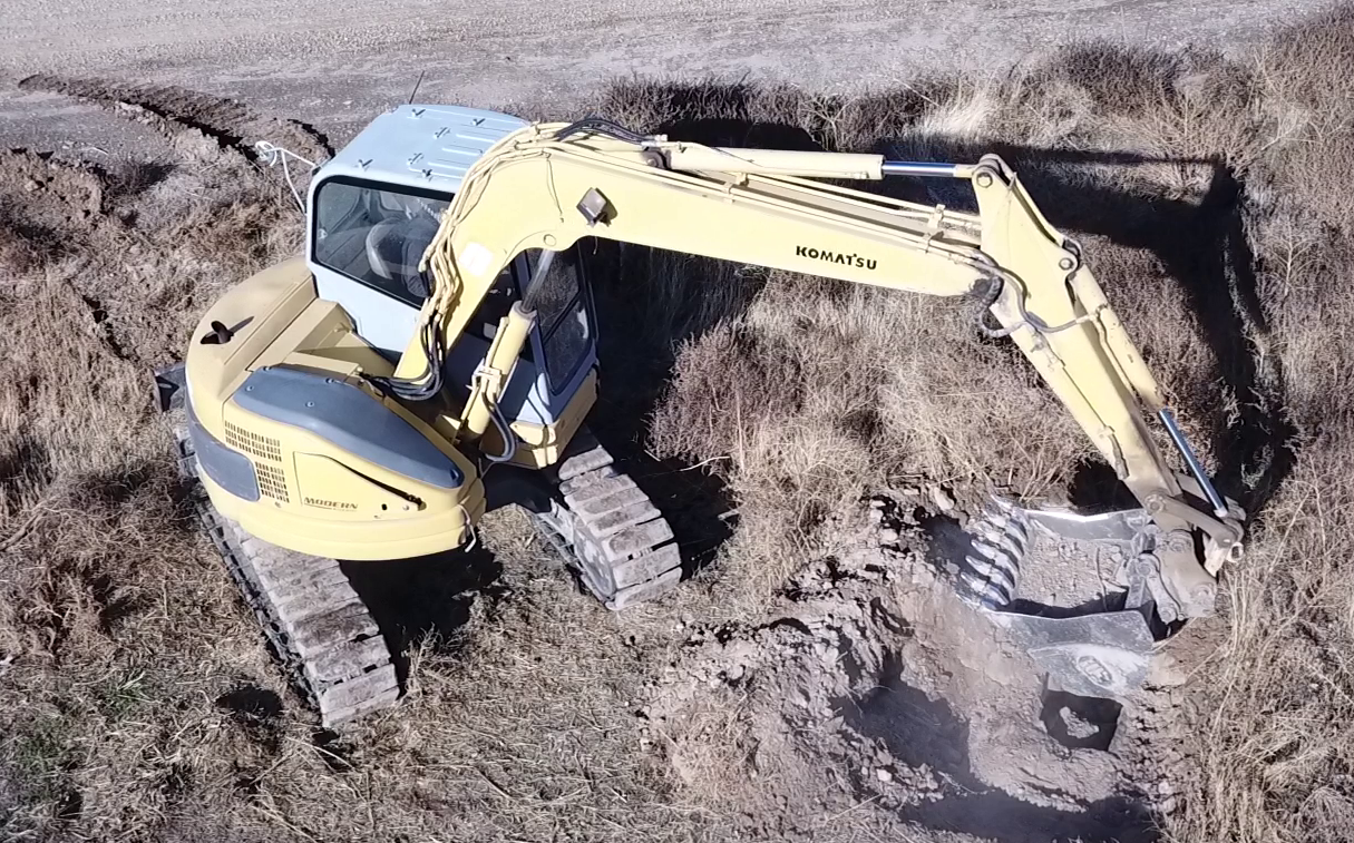 That “dent along the top” and slightly ripped metal is all that excavator was able to do to the tank. It took a decent bit of digging, rocking, and prying to convince the tank that it wanted to move from where it was.