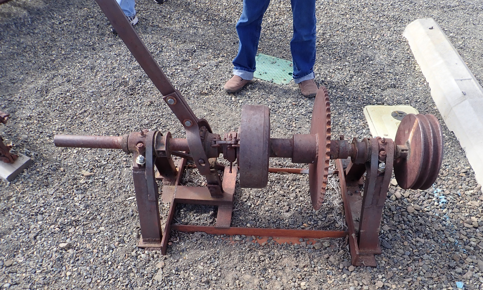 The usual old mechanical equipment is laying around outside - this is a clutch mechanism for some equipment, with friction lining in the center drum to connect torque through when you throw the lever. I’m pretty sure safety mechanisms included “Don’t put your hands where they obviously don’t belong.”