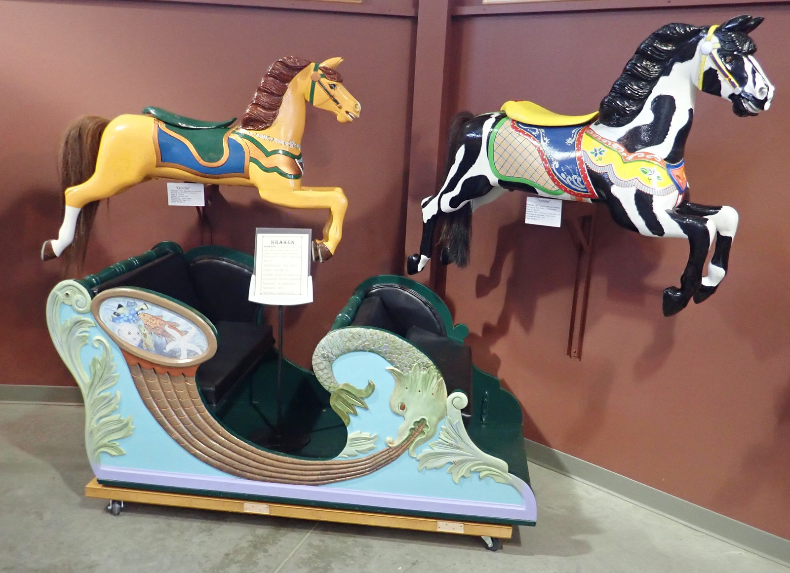 One of the main purposes of the museum is to store the restored ponies and wagons of the town carousel - a 1905 Herschell-Spillman, set up and used once a year on the rodeo weekend. The rest of the year, the equipment is stored indoors. They’ve all been restored over the years, and the details of the restoration for each component are available as well.