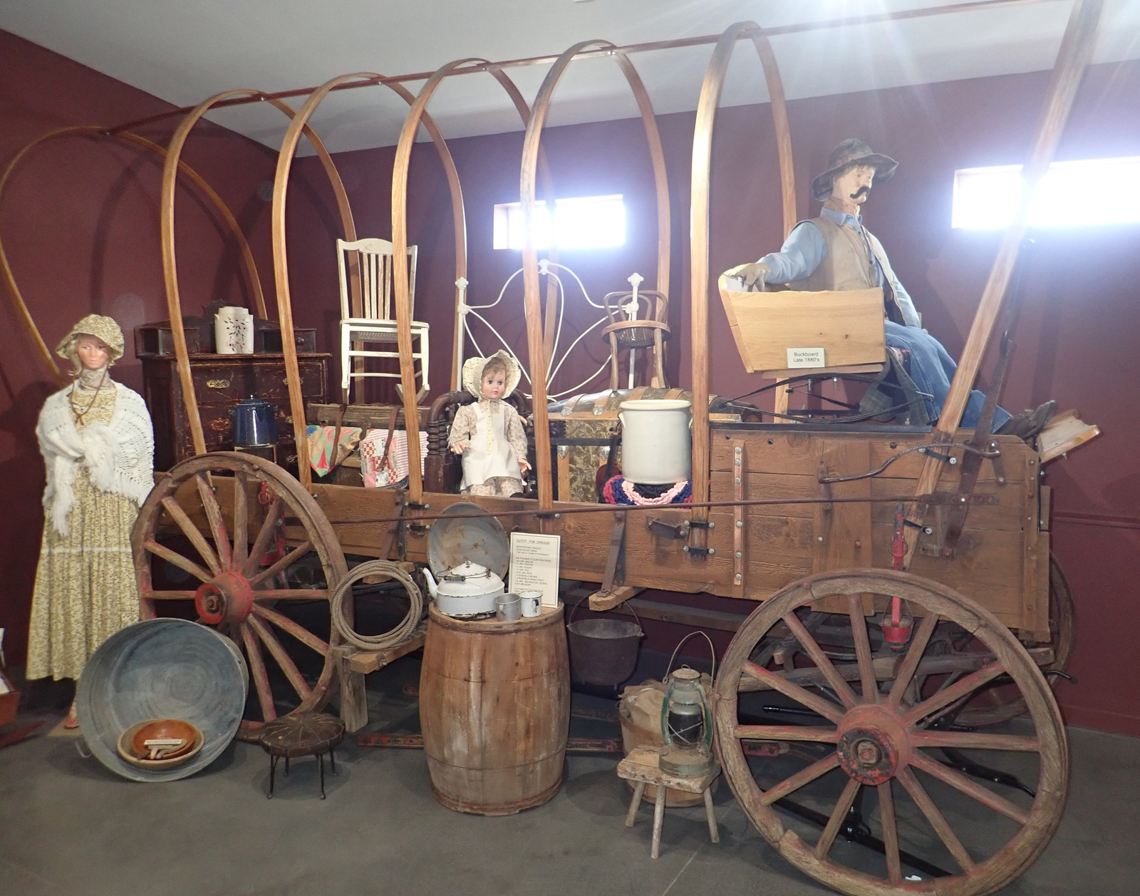 Finally, in the back corner of the museum, there’s a covered wagon that actually came across on the Oregon Trail. The story told is that someone locally bought a wagon to use as yard art and a planter, but after they picked it up they realized it was in far too good condition to let sit outside, so it got donated to the museum under the condition that it would be kept inside. There’s a lot of Oregon Trail sort of displays out west, for obvious reasons, and it’s still just staggering to think about packing everything you have into a wagon and heading west like this. On the other hand, we’ve lost a lot with the lack of any frontiers. They’re a good vent-valve for people in built up areas, and, no, I don’t think “Space, the Final Frontier” is likely to happen any time soon.
