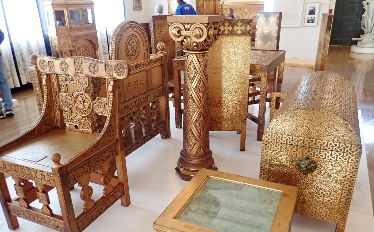The entry room includes quite a few pieces of furniture provided by Queen Marie. It’s all very golden-looking, though I don’t know if it’s actually gold leaf, or just a paint.