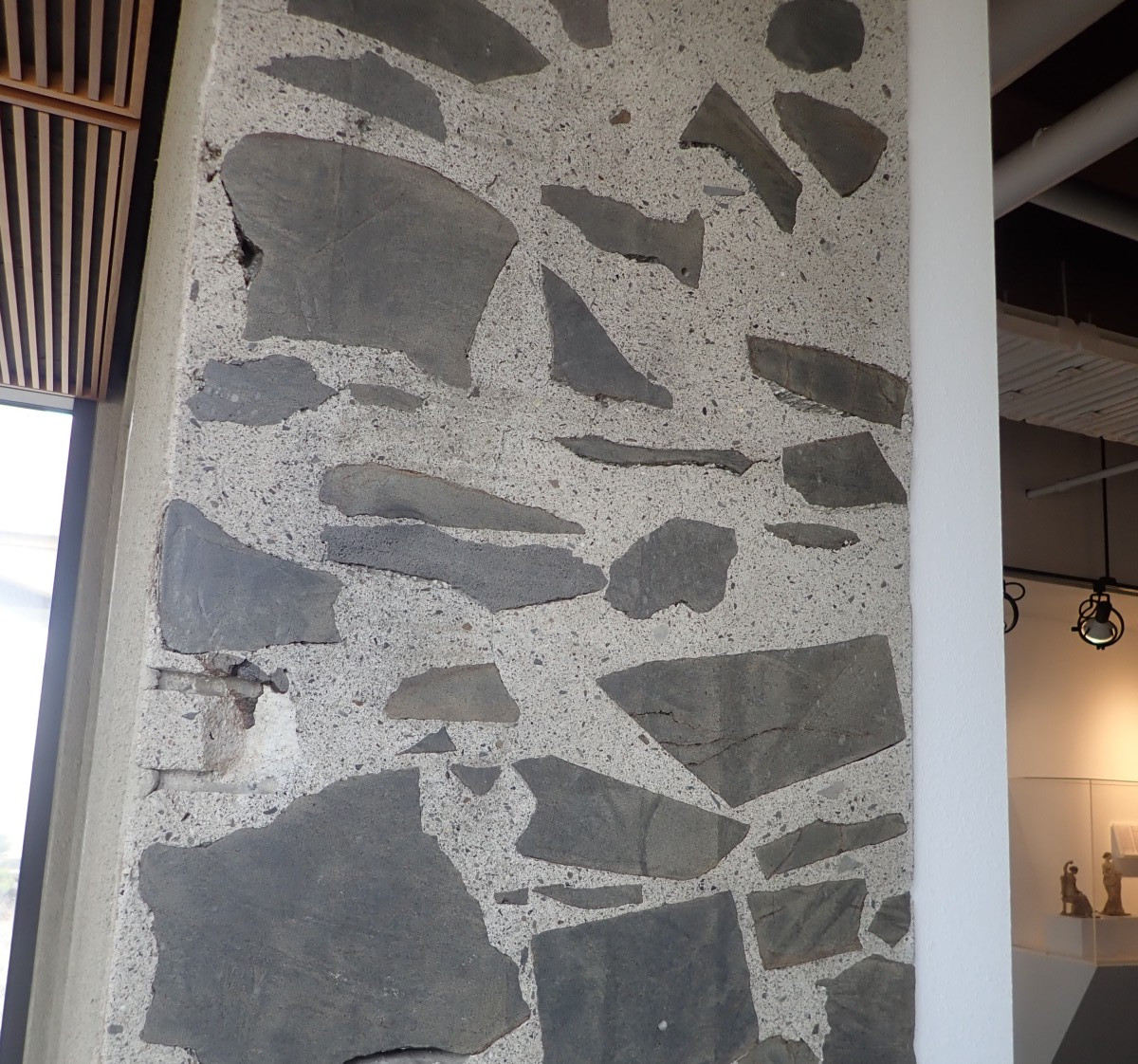In one of the exterior walls that was opened up for an expansion, they’ve left the raw concrete exposed - and, how familiar this is to me! The art of “lobbing a lot of local basalt in the concrete pour” was well used in our church building too, and jackhamering out some concrete involved moving a lot of rock out of the rubble. It seems to work just fine, and saves a good bit of concrete volume! I don’t see much concerning in how the concrete bonded to the rock here, and the church building foundation is at least 100 years old and still doing fine.