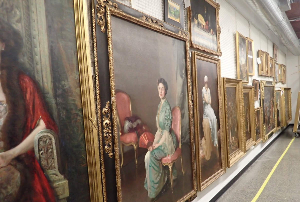 Storing large paintings safely isn’t something I’ve really considered, but they basically have to be hung - so one wall is nothing but paintings that are hung, awaiting a chance to be rotated into the display areas.