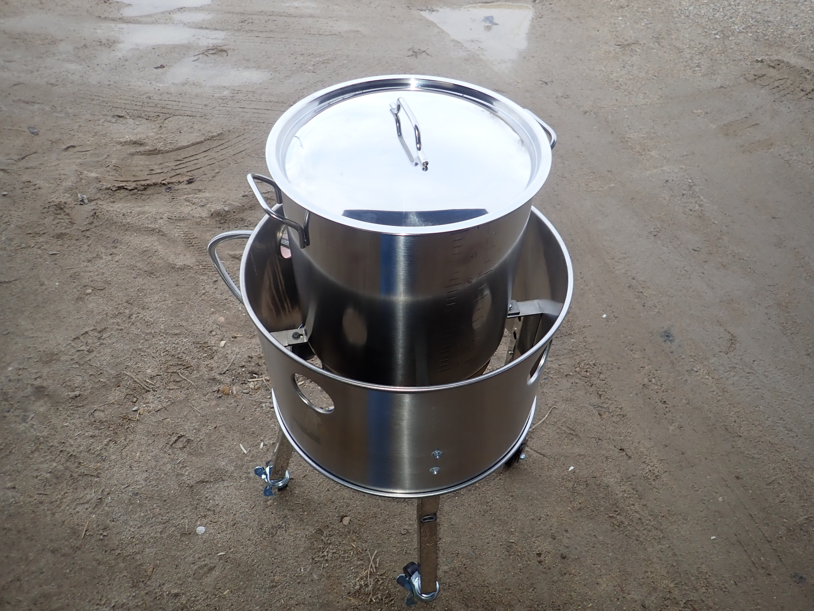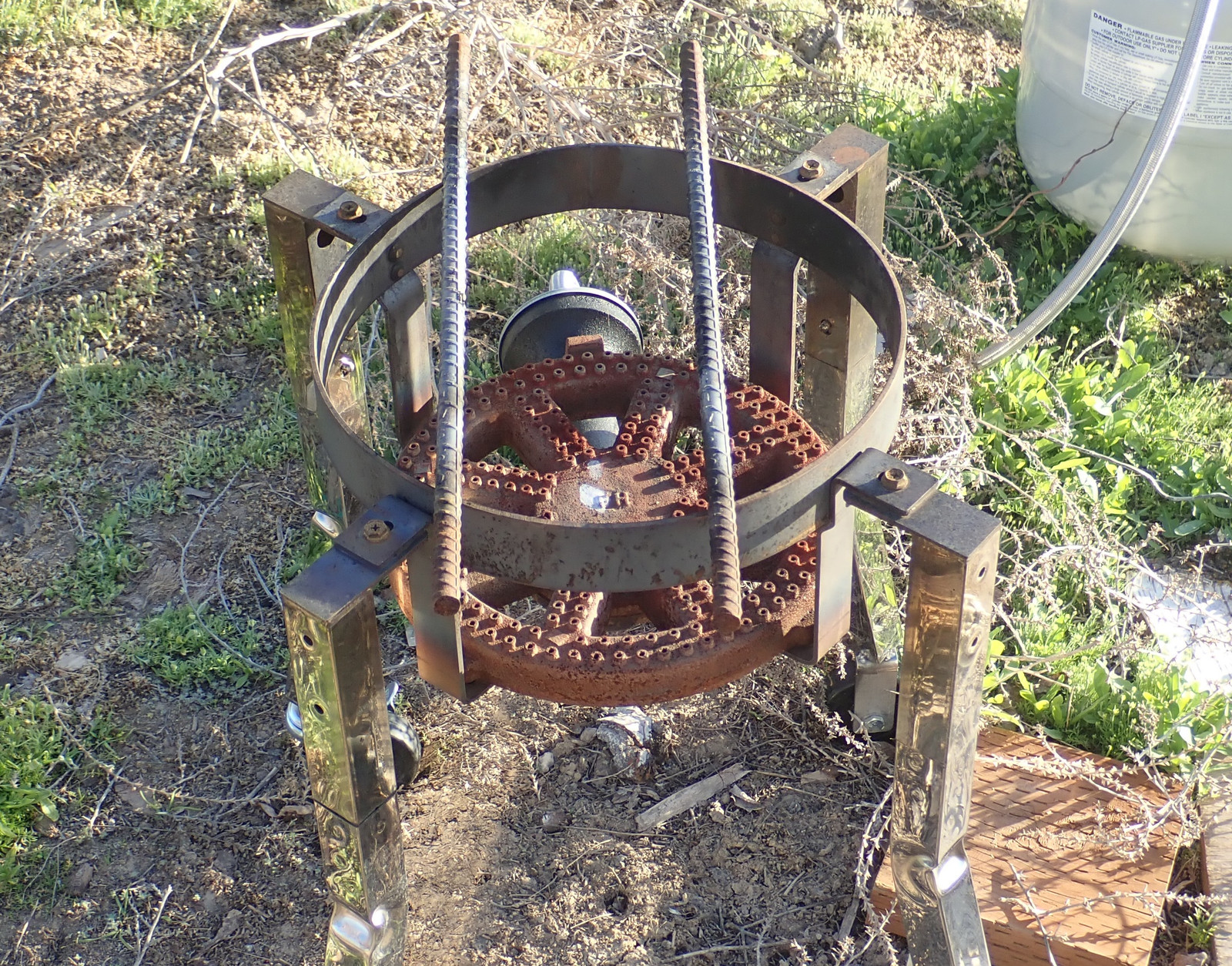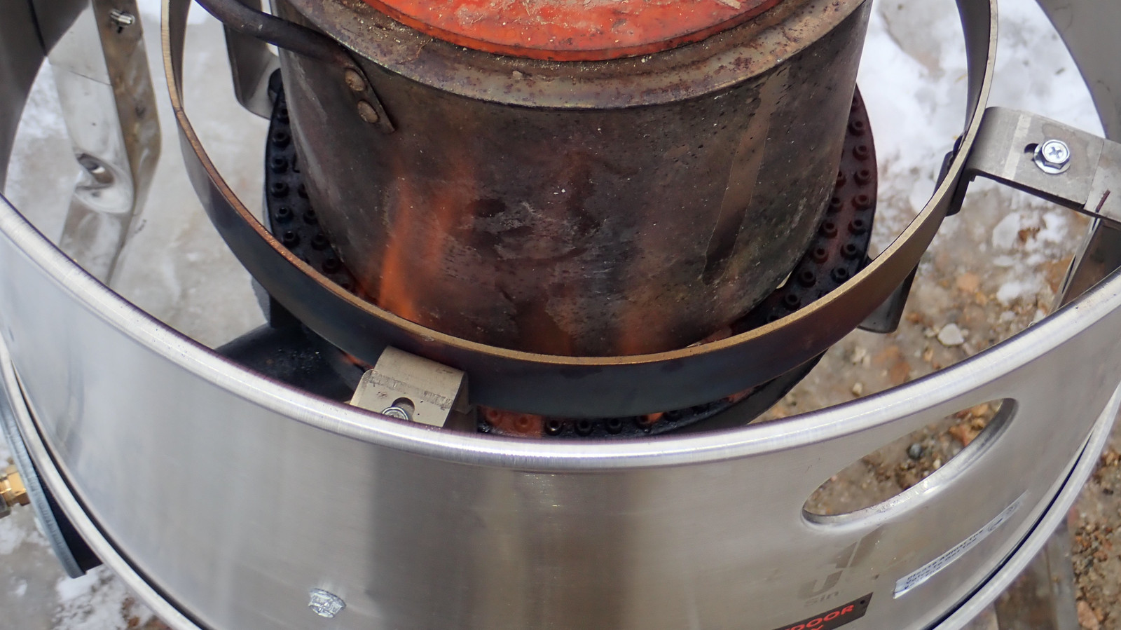 My burner here is a 200k BTU propane burner - a massive unit that’s capable of burning north of 2 gallons an hour of propane. My pot is rather smaller than this burner is designed for, so I had to be a bit creative.