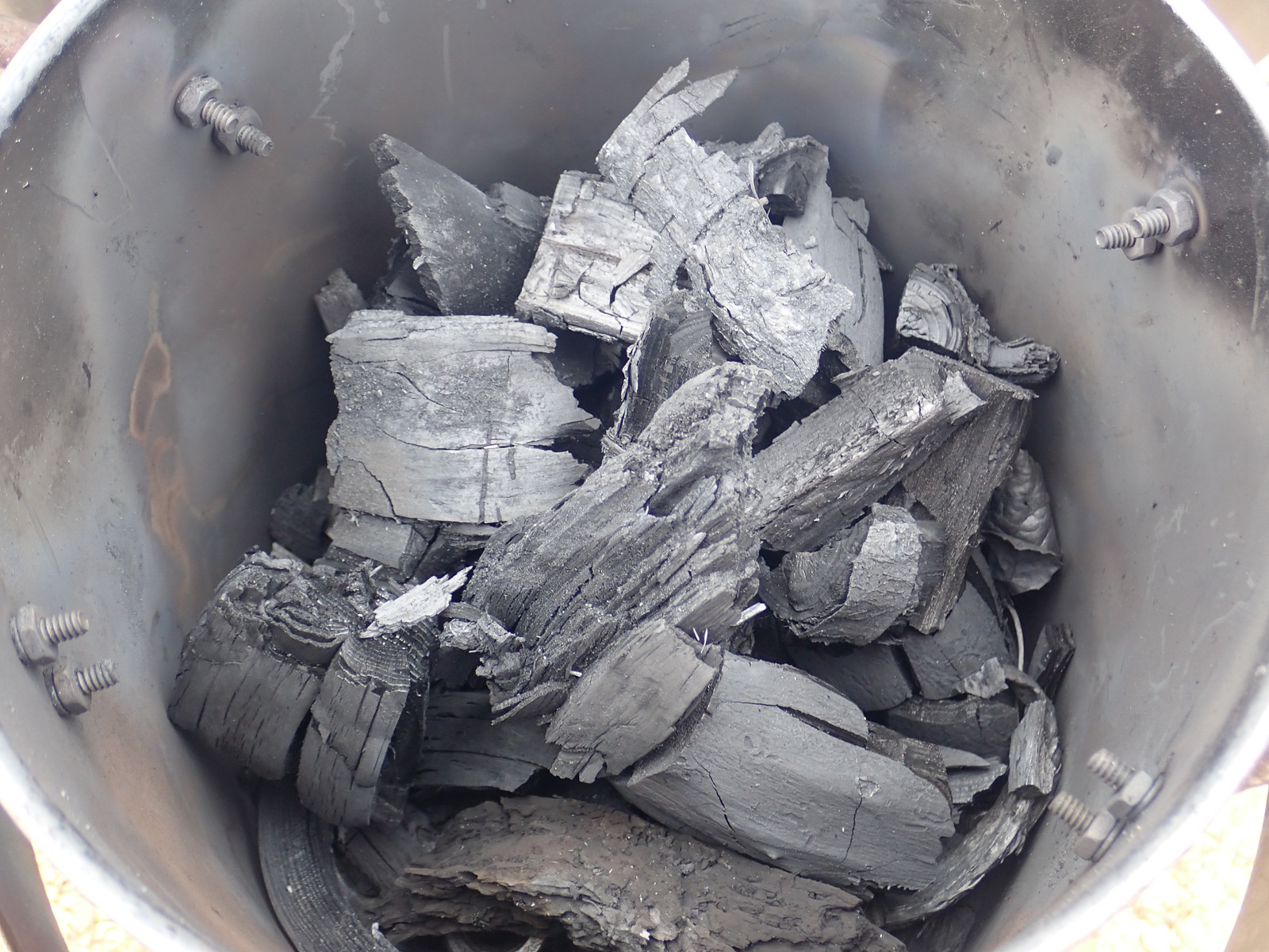 The results, though, are clear. This ran far hotter than the previous test. In addition to the charcoal coming off being more glass-like (indicating more of the volatiles were burned off), the thermometer… didn’t really survive. At some point during the testing, it got quite a bit hotter than the last one I fried. I really should invest in some thermocouples, but at this point, I don’t need a thermometer anymore - I know it’s getting nice and toasty.