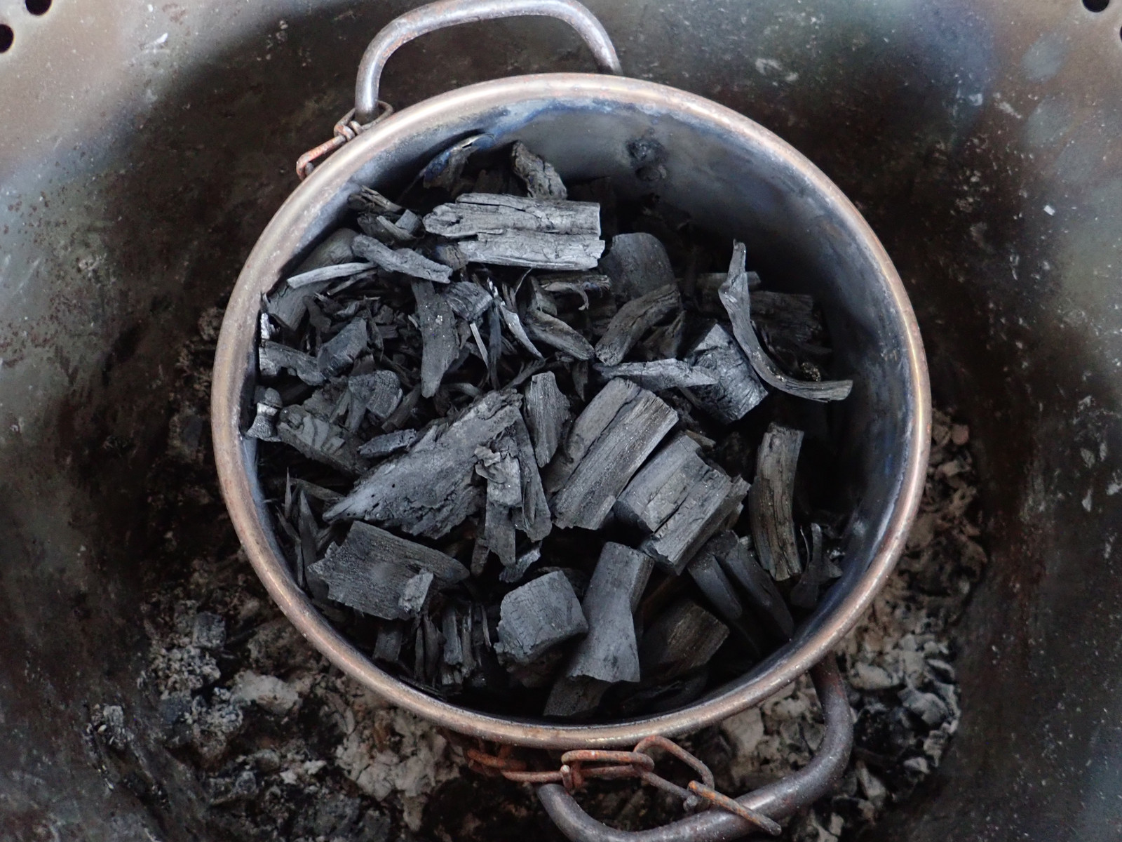 So far in this process, I’ve been more or less “flying blind” - I can tell based on how the output feels if I made good charcoal or not, but I don’t have a sense of temperatures in the pot beyond “Really hot” - the base of the pot, in the firepit, is typically glowing a dull red.