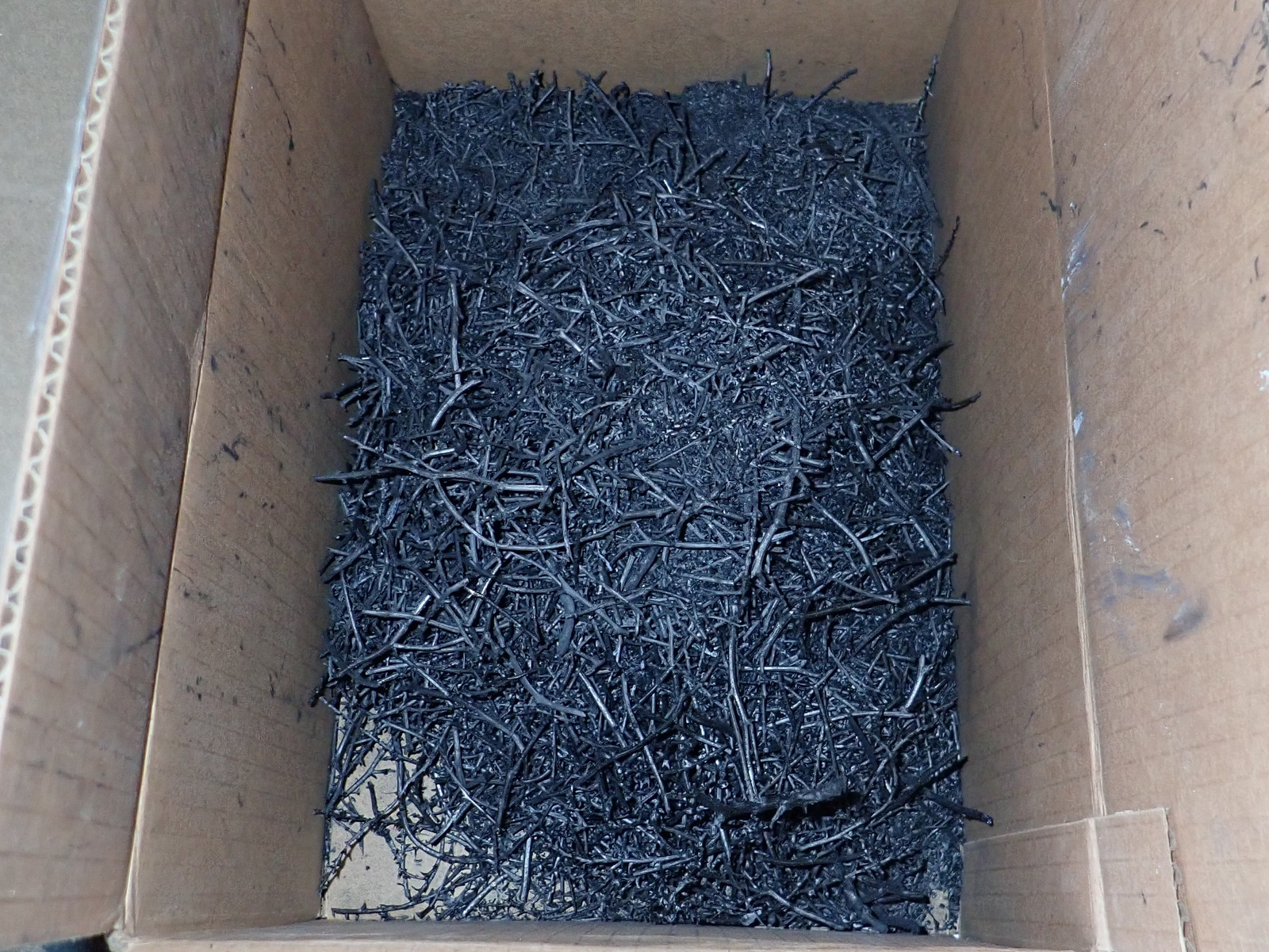 After it stopped flaring, I left the propane burner running for another 5 minutes or so, and then shut things down. The result? Yup, it’s charcoal! It’s not great charcoal - but it certainly qualifies.