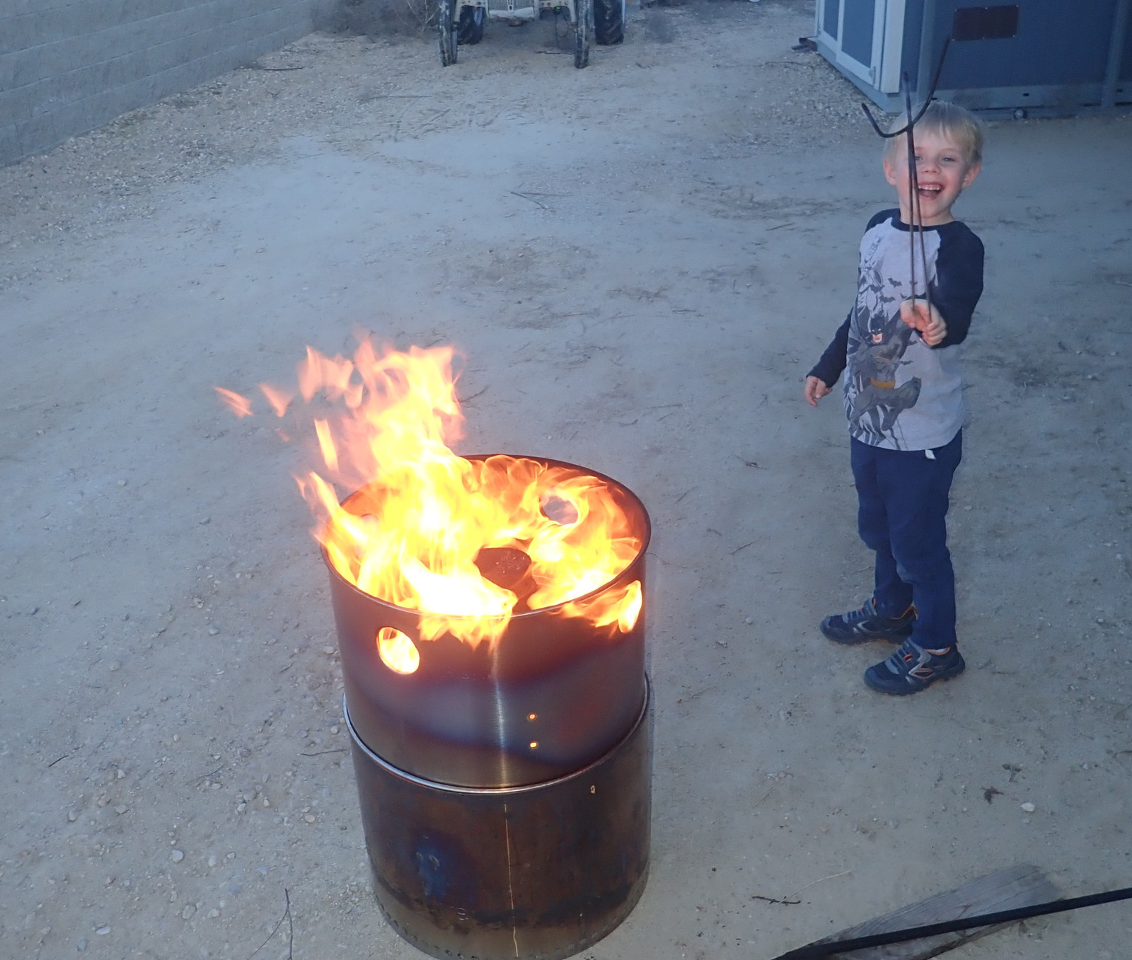 Of course, if you’ve got a fire going, you may as well roast a marshmallow or two on it. This just doesn’t make a good marshmallow roasting fire, though. It’s far, far too hot, and it’s almost impossible to find a spot that won’t light it on fire, while still getting enough heat in to roast it. My son certainly enjoys the frequent fire experiments!
