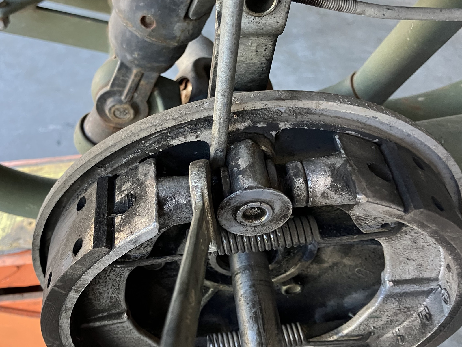 “Every now and then,” you should also check your rear brakes out and adjust them. A good time to do this is when you’re replacing tires or packing wheel bearings, but it’s also worth doing if the rear brakes just aren’t behaving quite right. They need some adjustment at intervals to reset for wear and allow the actuating rods to be adjusted back to their neutral positions.