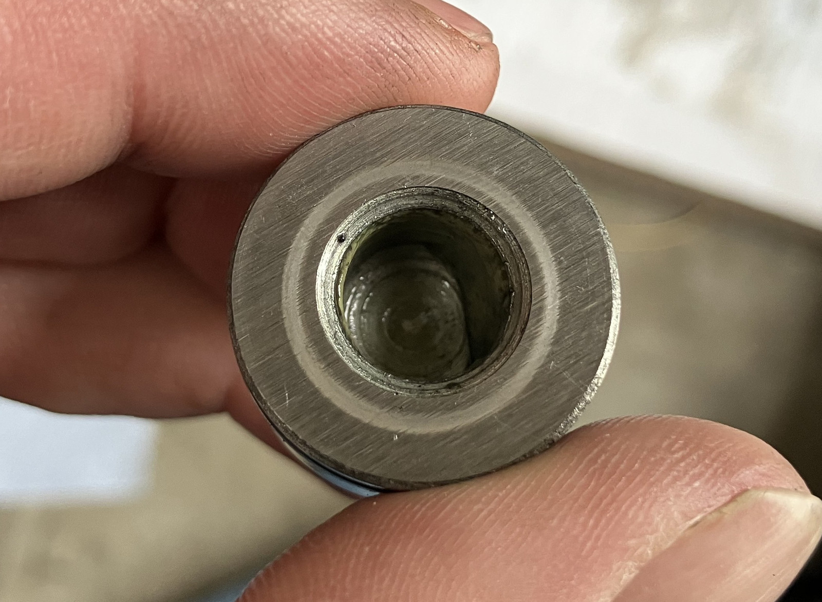 And here’s the problem. Ball bearings are NOT thrust bearings on flat surfaces! They don’t have enough contact area to spread the load out, so at best you end up with a thin worn ring on the two sides. At worst, well… I was expecting some grooving, I was not expecting this level of damage to the metal surface in only 35k km, most of which has been rural backroads. Also, it could be far worse. The bearings were still working fine, but this is obviously starting to “trench” - and it’s not what things are supposed to be. Given time, it would have continued the damage until the whole ring looked like this. The good news is that this is not pushing metal above the base yet - it seems to be purely metal lost. Why does your Ural have fuzz on the magnetic drain plugs? This would be one reason…