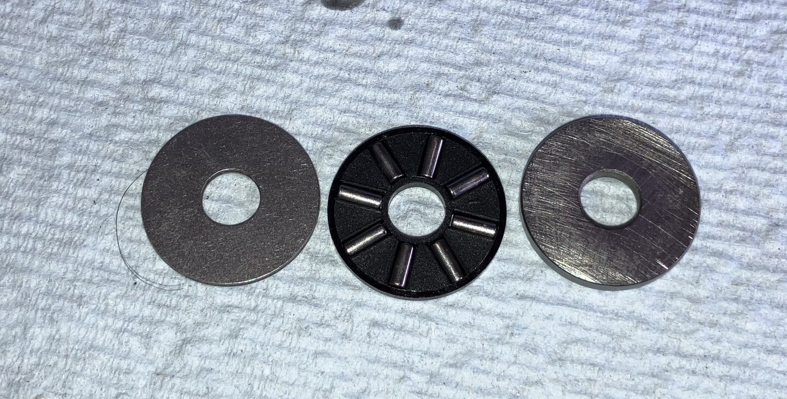 The replacement part for this, which is used in the 2006 and later Urals (or, at least, the concept in some form or another), is a proper thrust bearing. Instead of ball bearings, this uses roller bearings that run along hardened metal washers. The thrust loads are spread out over a far wider surface, and this sort of thing should last “the rest of the life of the bike.” Most other motorcycles use something similar and never have problems. Yes, the rollers are cylindrical. No, the slight bit of sliding shouldn’t matter. They’re not super high stress, and there’s no shortage of oil that gets back in there - as evidenced by the amount that has gone past these bearings and out the back to rustproof the aluminum gearbox…