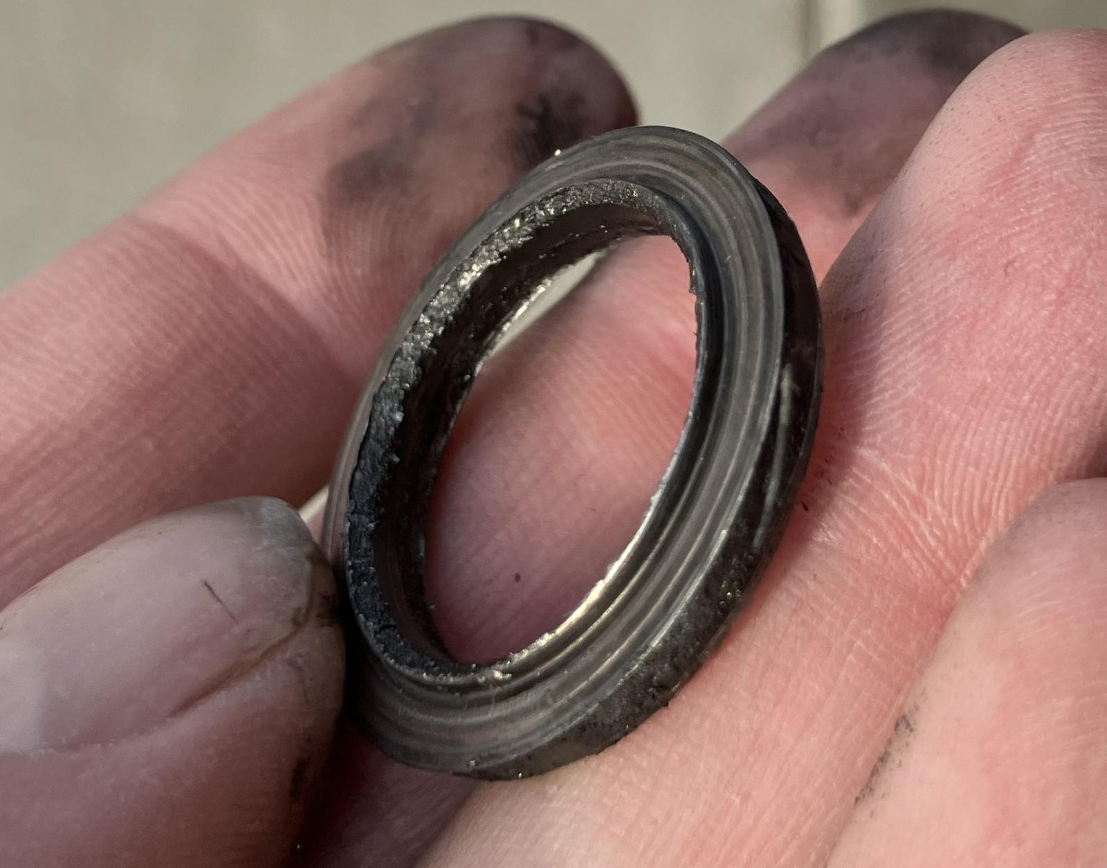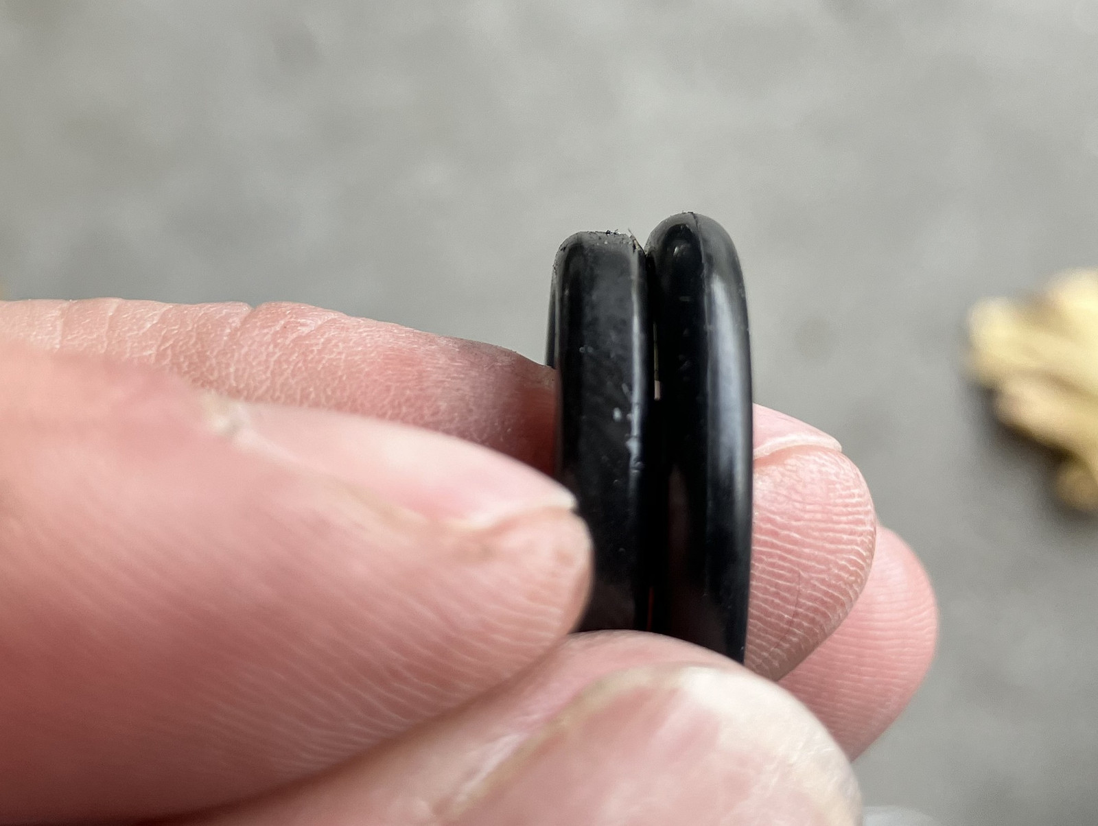 The other problem, more relevant to newer Urals, is that the o-ring will wear and leak over time. The o-ring is supposed to be rounded, not flattened off like this - but also, after 20 years and a lot of use, this happens. No big deal to replace. Pull the old one off, put a new one in, reinstall.