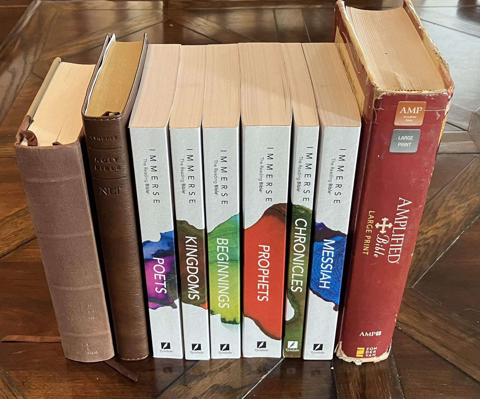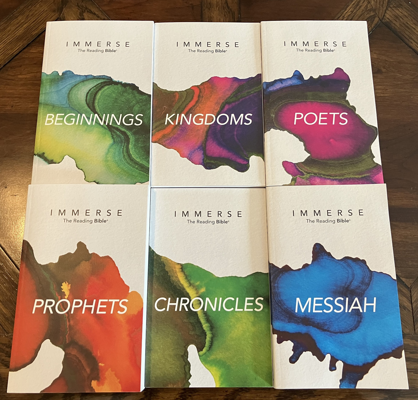 Changing gears slightly, I’ve recently discovered a new (paper) Bible format that is worth sharing: The Immerse Reading Bible, a project of the Institute for Bible Reading. It’s the Bible (New Living Translation), broken into related sections, each as a paperback book with the individual books of the Bible set up to read like books, not like the reference material some Bibles can end up feeling like. It turns out there’s a reason that Bibles use small fonts and very thin paper, and if you don’t, you end up with something that’s quite a bit thicker - which is why it’s broken into six books.