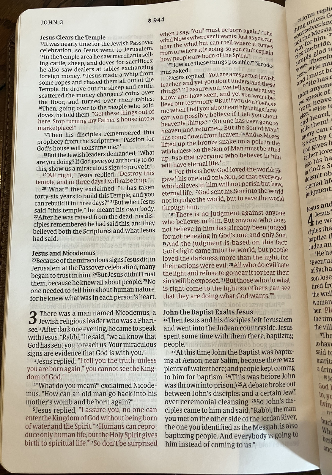 “Reader’s Bibles” have been a thing for a while, and I’ve been making heavy use of my ESV reader’s Bible for some coursework I’m taking, but even this one still has the problem of “very thin pages,” with substantial bleedthrough depending on the lighting conditions. There’s certainly value in having everything in one book for reference, but for general reading? I’m less convinced.