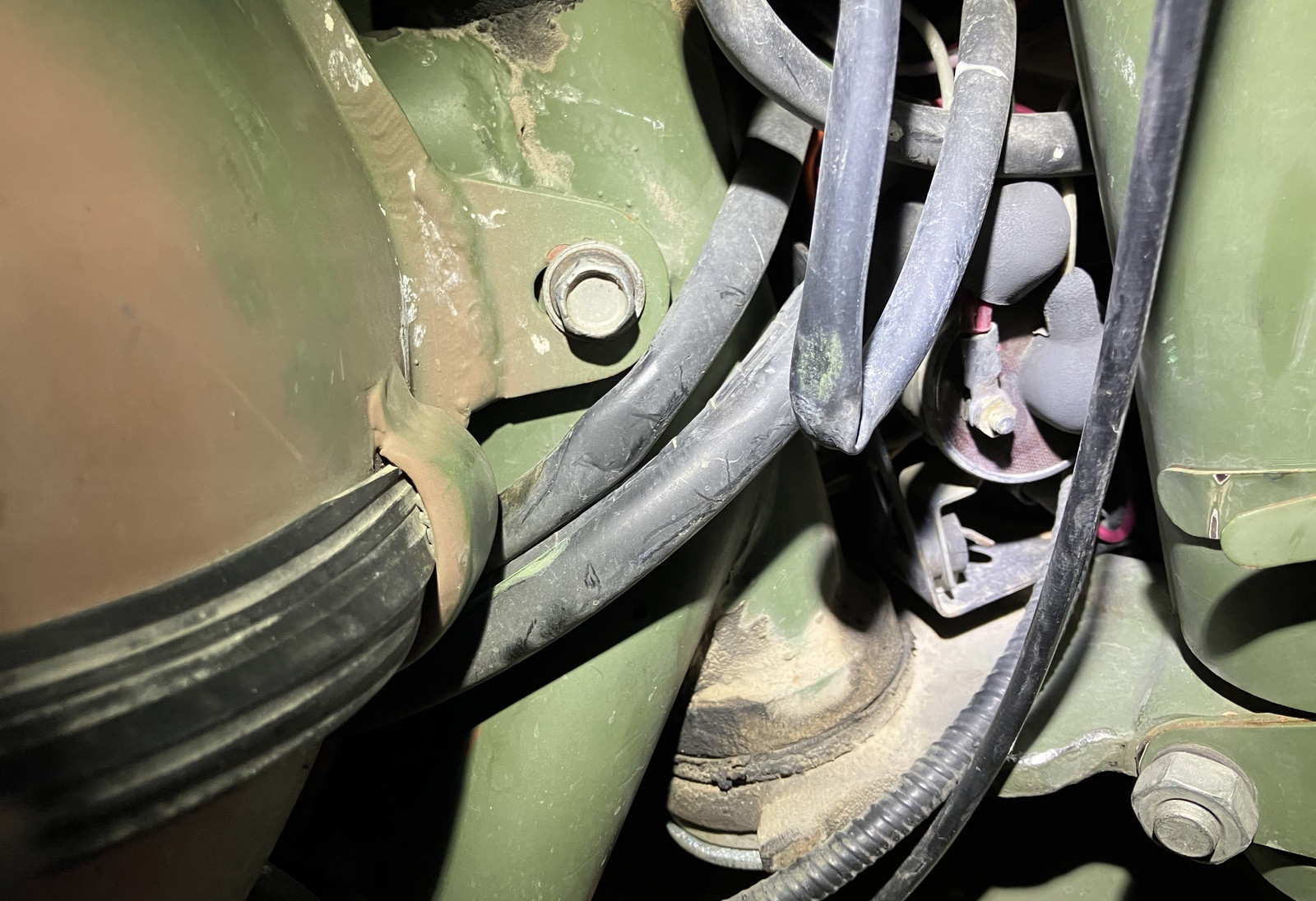It does not work well on older Urals. The bar diameter is weird, the metal is thick, and no matter what you do, this isn’t going to fit in the bar. What Would Ivan do? Well, a chunk of fuel line is smaller, rubber, and smooshy. I happened to have some laying around from redoing the fuel system somewhat (the crossover between tank halves didn’t seem to be working so I replaced the line and it improved things). Hm…