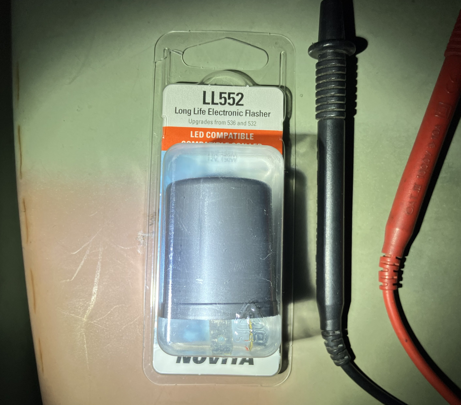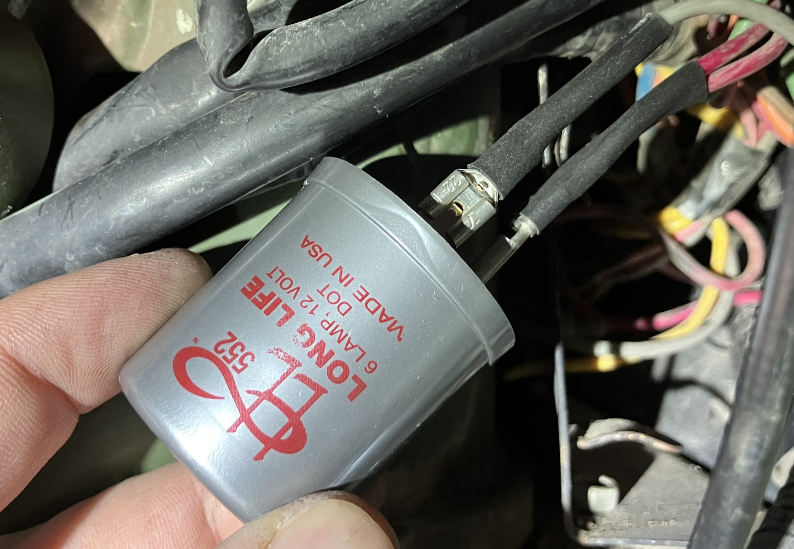 Next step, apply flasher. Red wires to go the input (“X” on this one), grey wire goes to the output (“L” for Load). At this point, test the system - and you should have a working set of turn signals again! If not, well… time to dig in deeper, with a voltmeter, because something far deeper in isn’t right.