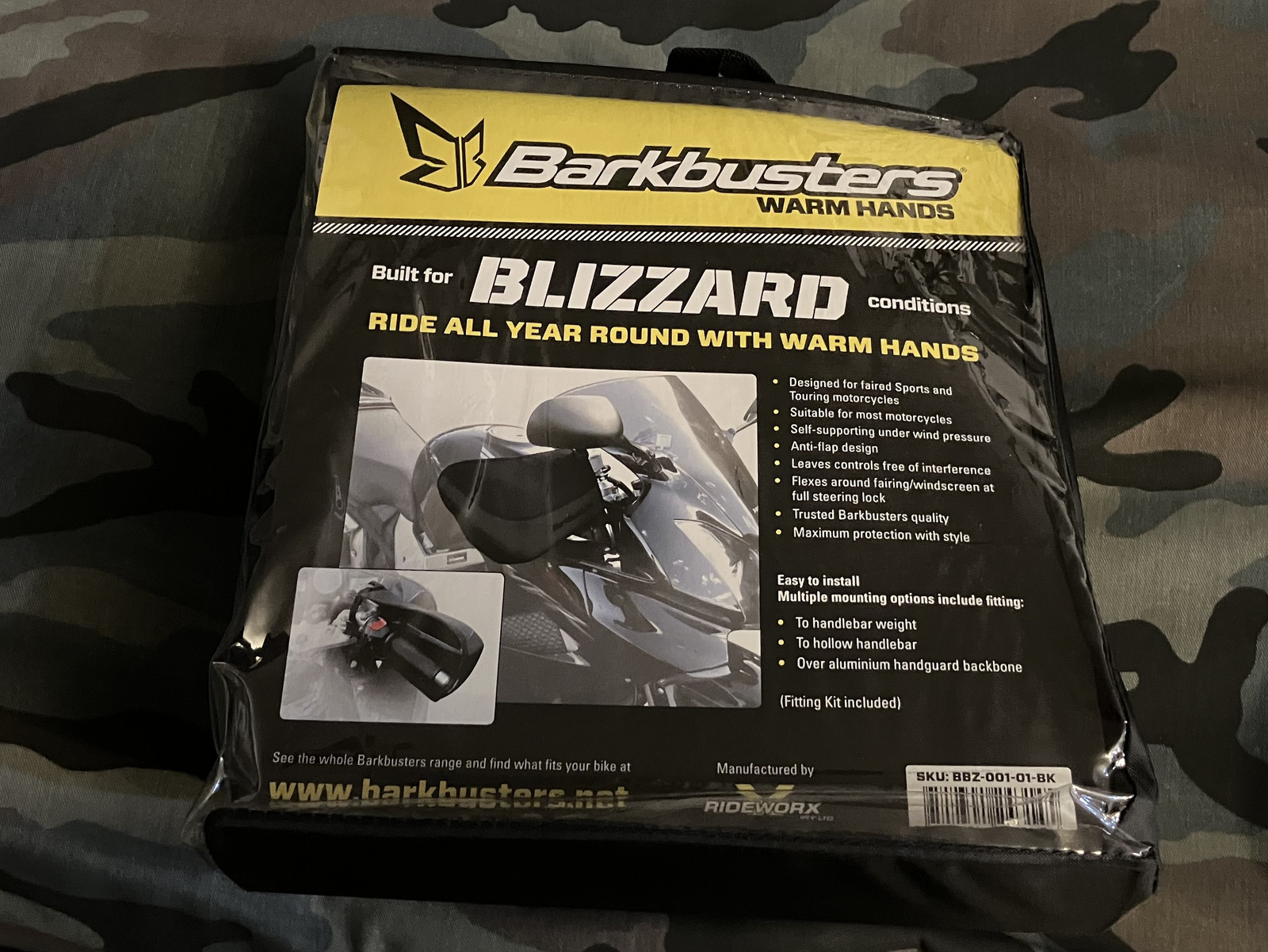 On the other hand, “Built for blizzard conditions,” and still allowing easy hand access in and out? I’m not sure how many people ride in actual blizzards, but I’m certainly one of them. One set of Barkbusters Blizzards later, and I’ve got a new thing to play with!