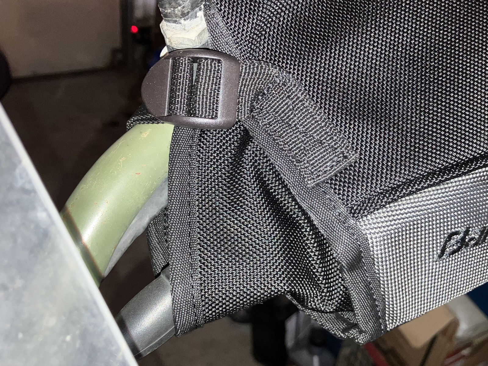 The inboard end is nothing complex - wrap a strap around the bar and clamp down. Make sure you wrap the strap around the bar and not your wiring harness, hydraulic lines, etc. If you want better wind protection, the velcro triangles go inboard of the main guards. With how my windshield deflects air, these seemed like a good idea to install - so I did. They just velco in and close up the gap!