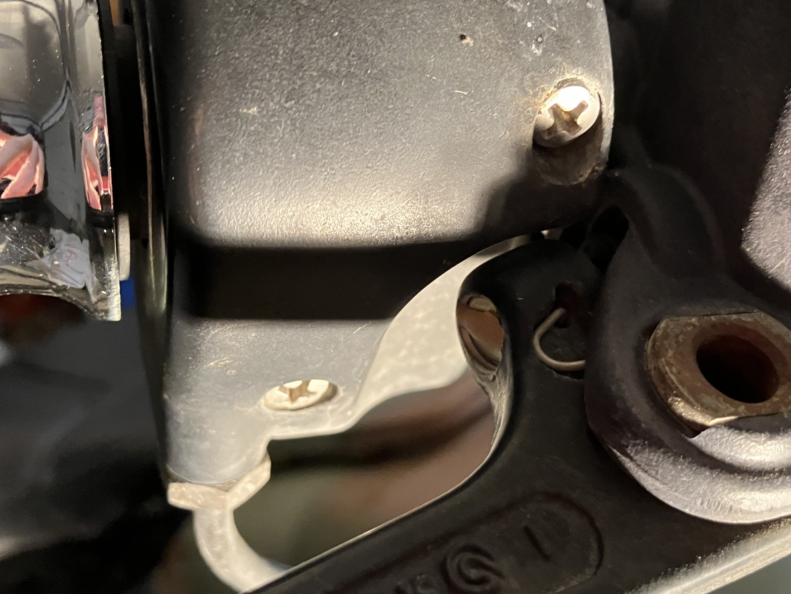 Further investigation of the ground wire between the chassis and the battery revealed that I should just redo the whole thing. The nut on the frame and the “spike washer” that helps make contact weren’t in good shape. At least in my bike, this is on the right side of the seat where you won’t generally look at it unless you’re specifically looking for it. Undo that (a pair of pliers underneath will help keep the bolt from spinning), and a couple relays and the chassis to battery ground wire falls out.