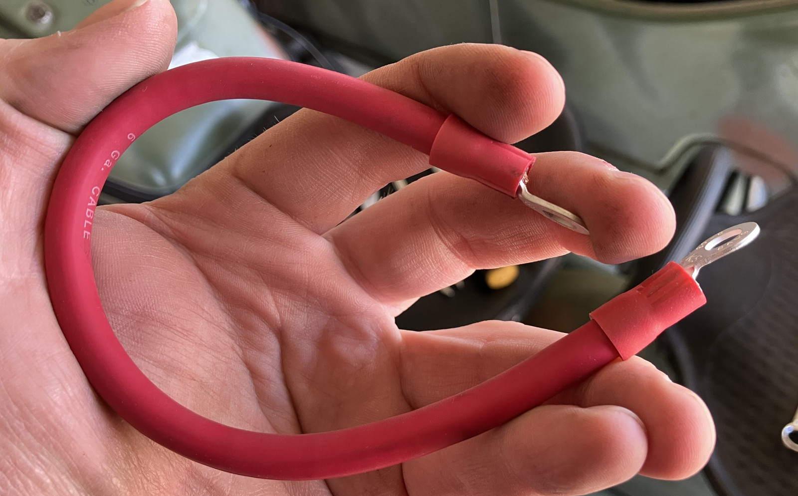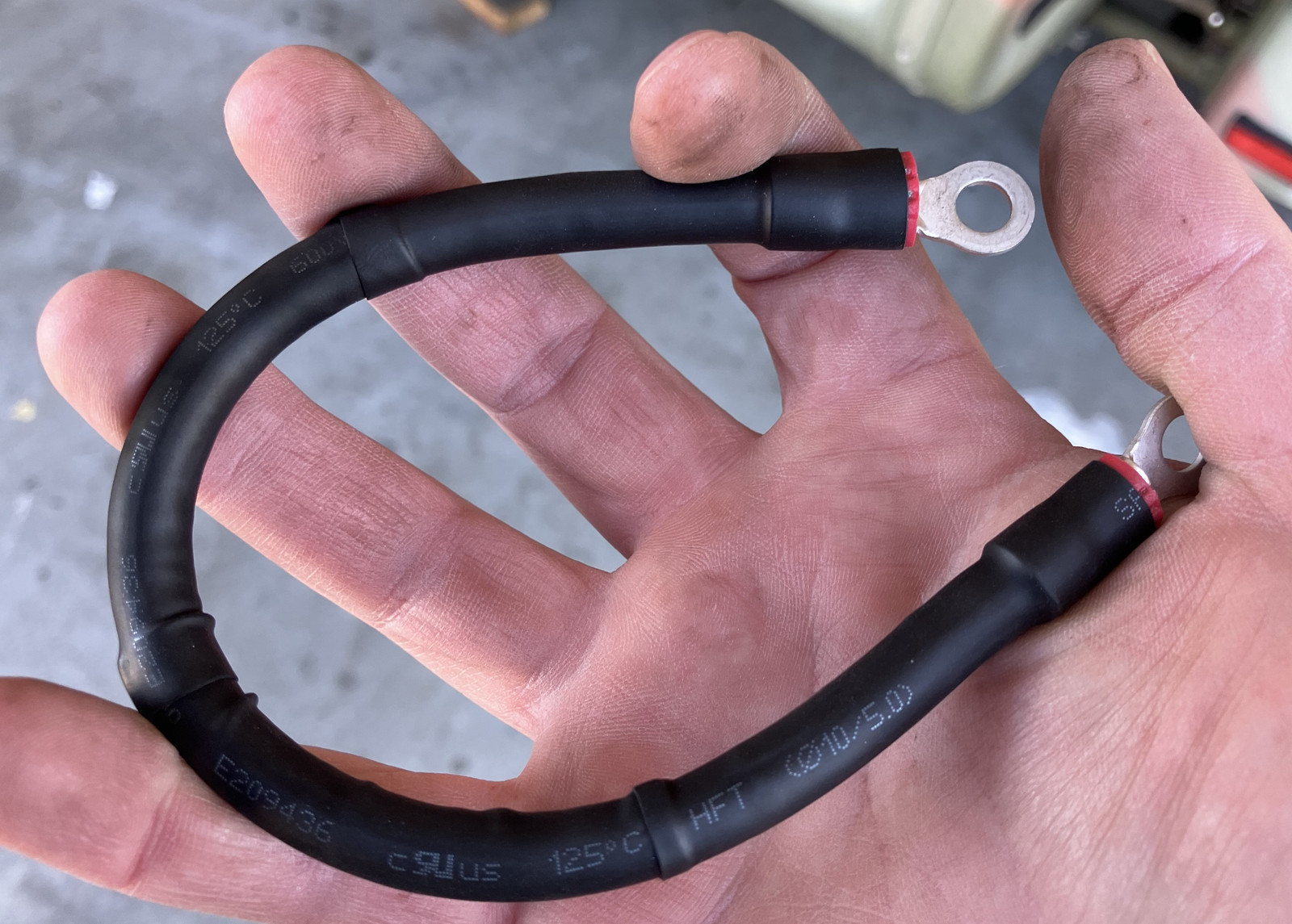 A couple crimps later, and the wire is done. However, it’s also the wrong color throughout. I know myself well enough to know that a red ground wire is going to be a problem at some point in the future (no, the Ural is not positive ground, or this wouldn’t be an issue). Also, they didn’t have anything reasonable in black welding cable at the parts store. But they did have…
