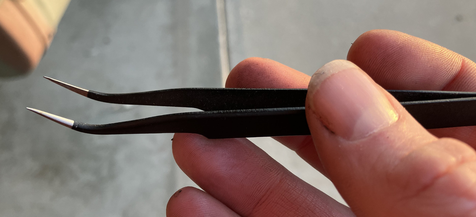A standard iFixit pair of tweezers works perfectly (yes, I am aware older readers may have a different name for this particular style of tool). Reach down, holding the slide down so you don’t pull the slide up and knock the diaphragm loose, and pull the needle up. No problems!