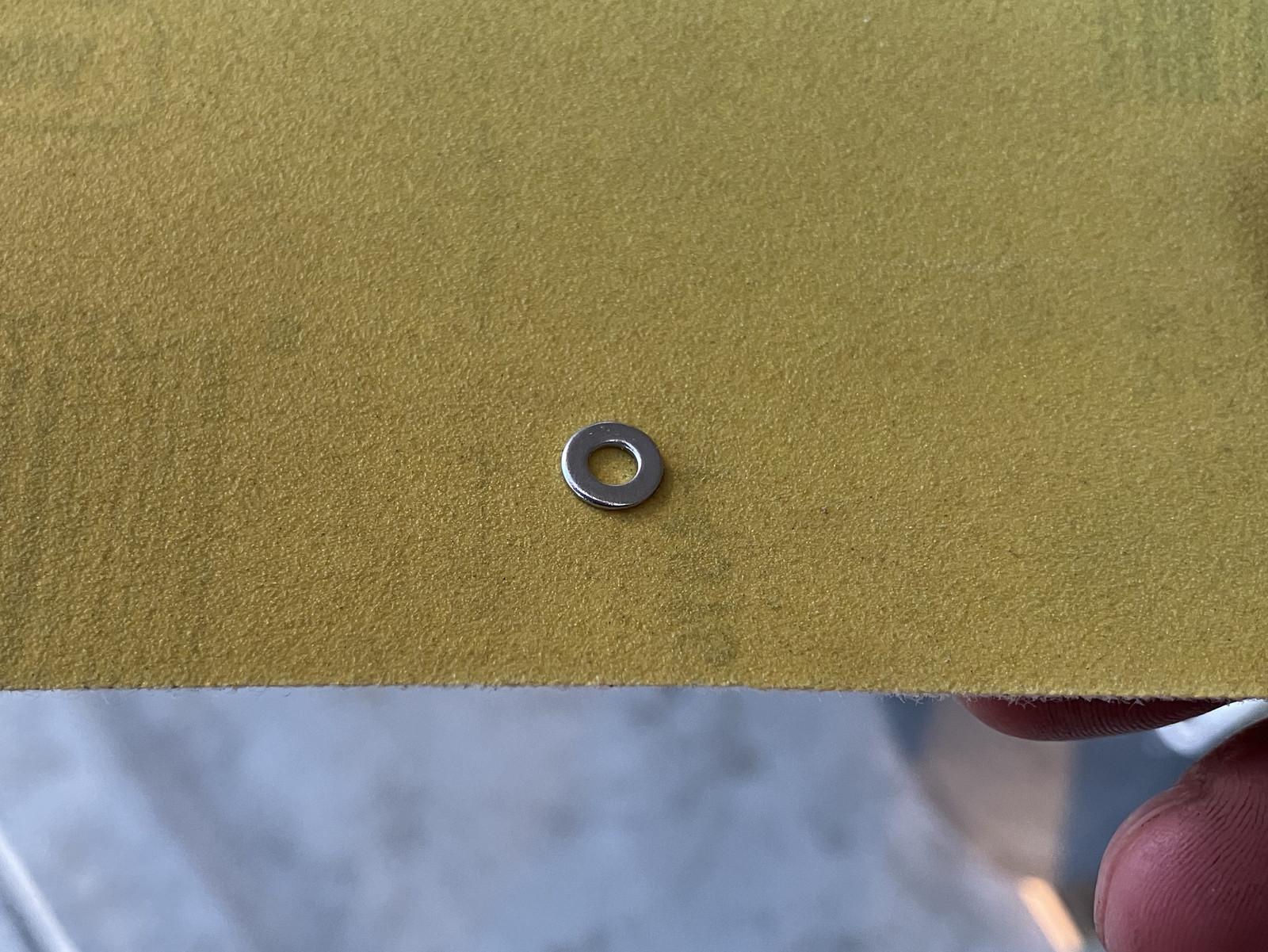 Finally, add a shim. Your local hardware store M3 washers work fine, though most of the cheap ones have some flashing on the back you’ll want to sand off. Put it around the needle, drop it back in, and you’re done!