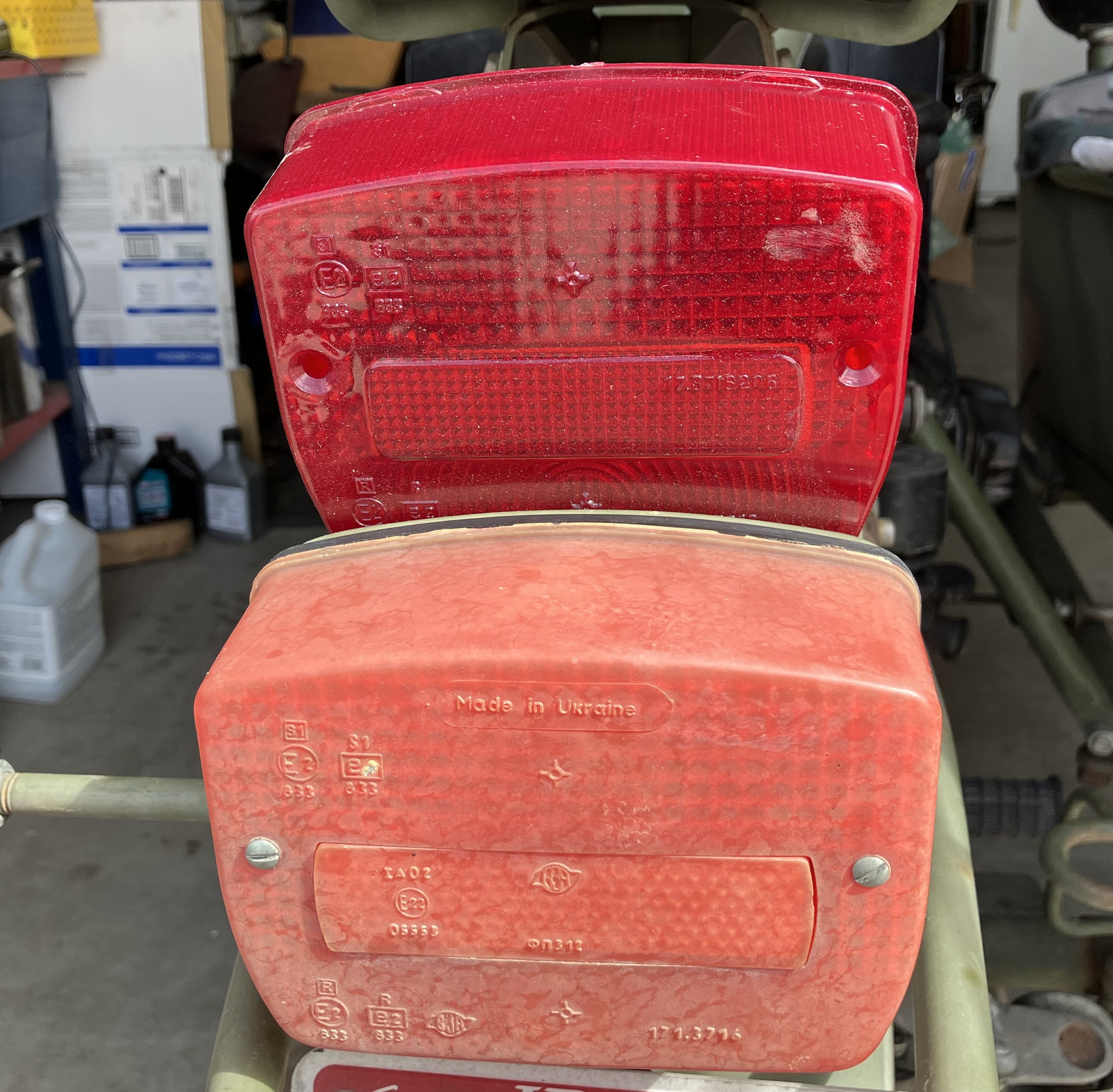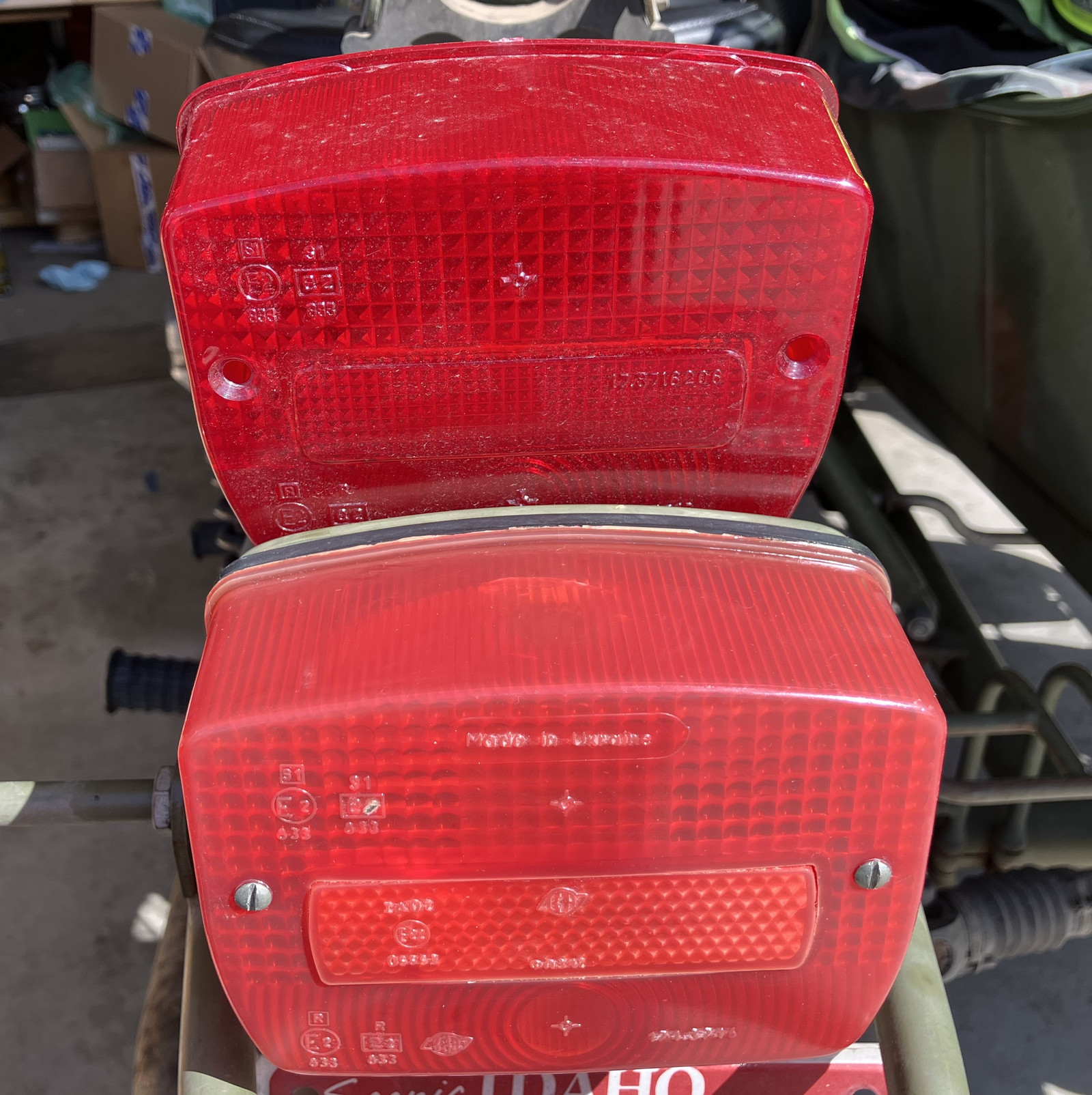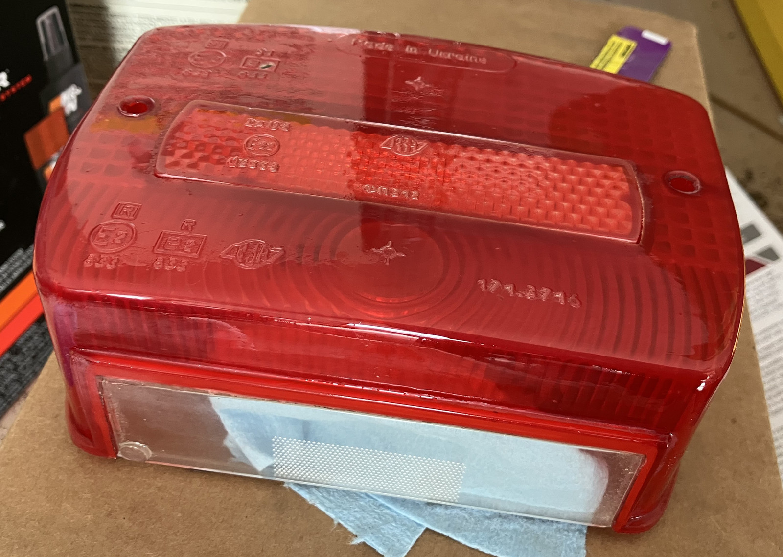 Yet another interesting issue I’ve run into is that my tail light lens got very heavily oxidized over… quite a few years, and a lot of sun. I think I replaced this lens shortly after I got the bike, so it’s 8-9 years old. I found a replacement again (they’re getting harder to find, like all parts for a 2005), and you can really see the difference.