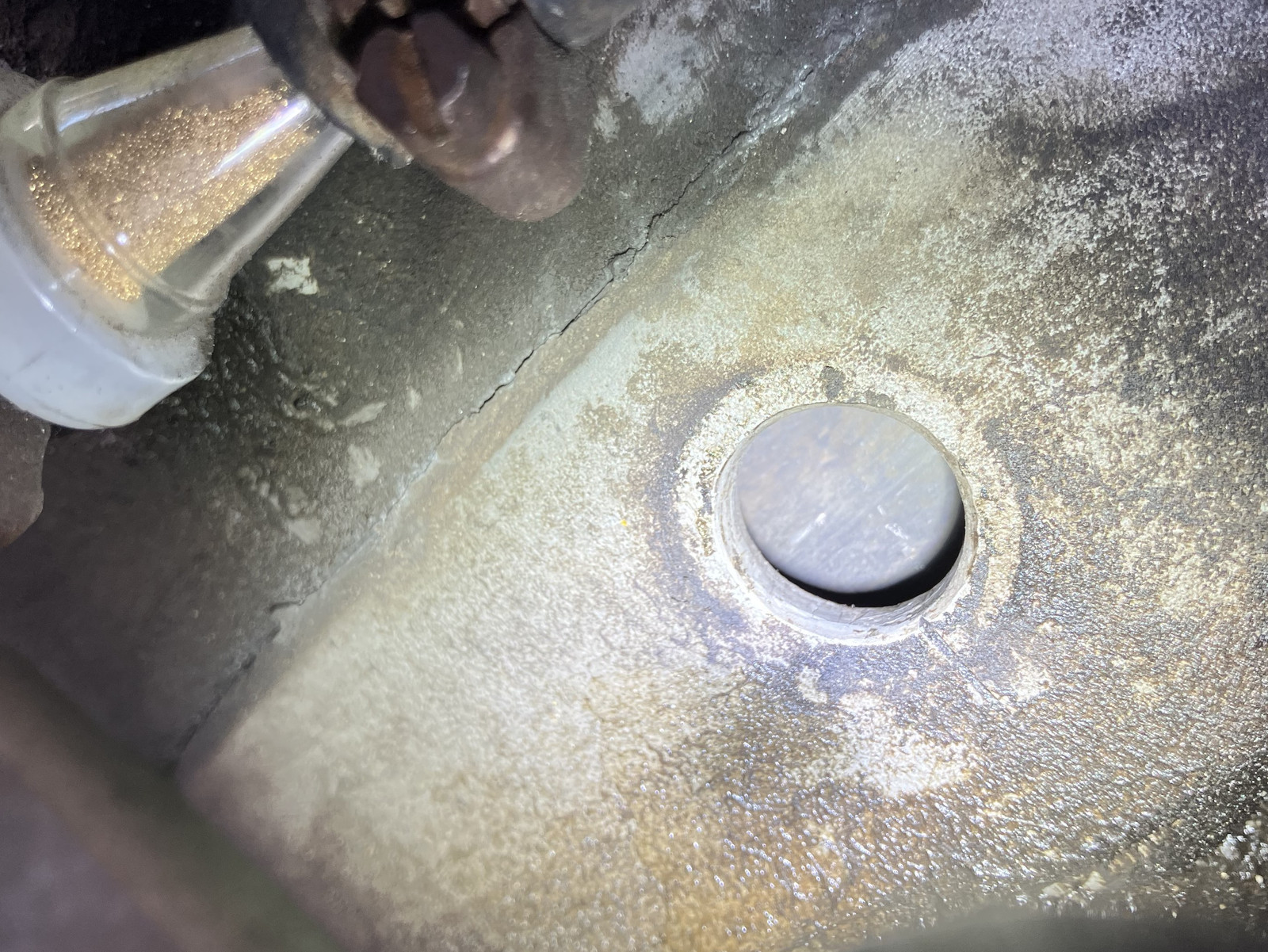 This is the timing mark I found. I swear, it’s a line with a dot, if you imagine well enough…