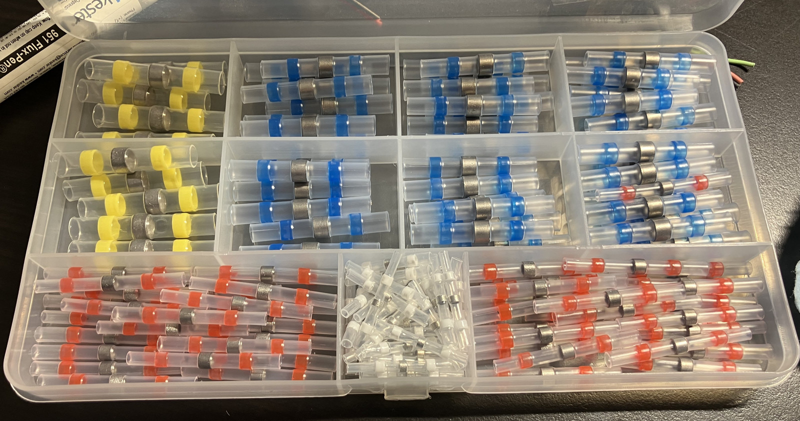 If you don’t yet have a set of these solder/shrink tubes, they are awesome. I use them on quite a few things, and they’re well worth having around. Seriously. If you fix wiring, get a set of these.