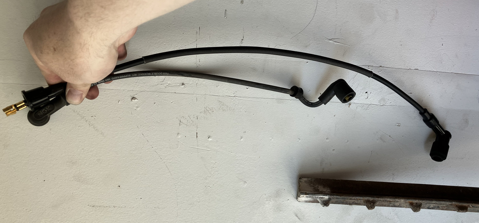 Here’s a tip: The plug wires you need are used on older “BMW Airhead” engines. You want 5kOhm resistance in the wire, and the best way to do this is a 5k resistor cap at the spark plug end, with solid metallic plug wires. Often, the plug wires themselves are the resistor, but this makes dialing in the resistance hard, as it’s dependent on the length. The 5k resistor caps do everything you need, and the couple ohms of the metallic wire don’t matter.