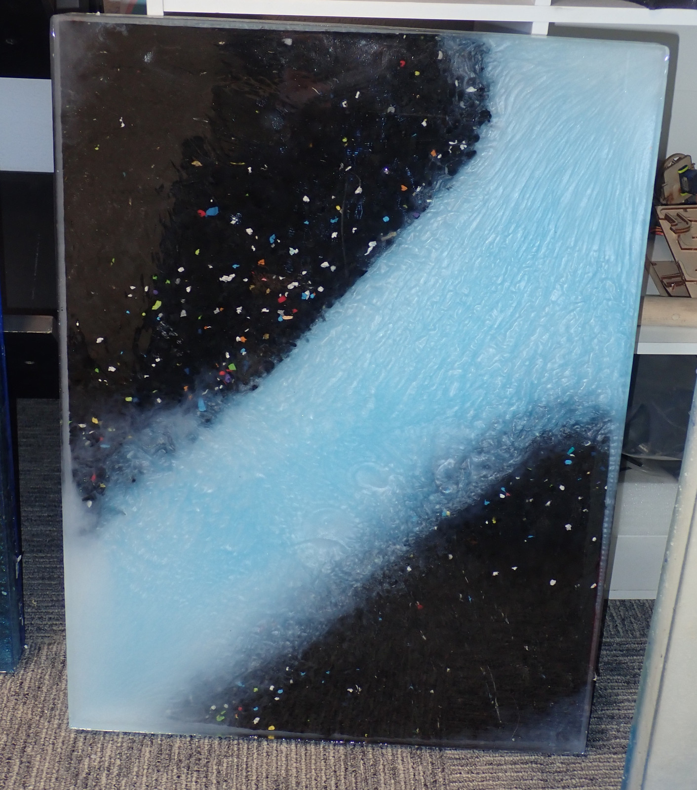 Another large piece resembles water and ice floes - but it’s entirely waste plastic and a layer of epoxy!