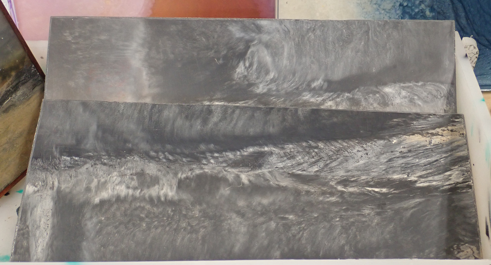 One of the major things Scott has been doing with the plastic waste is creating “modern art” - but out of reused plastics. All of the pieces here - both epoxied and polished, or raw - are created with plastic coming out of the waste stream in various forms. The results are certainly interesting!
