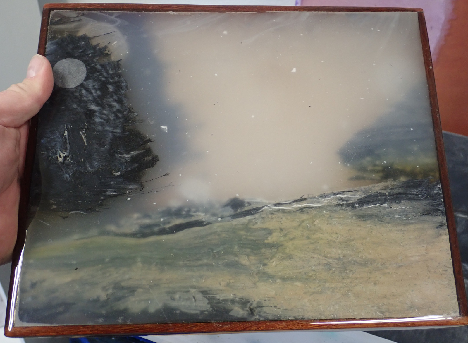 This is a large piece with about an inch of epoxy on top of it, though the plastic debris is at various depths in it.