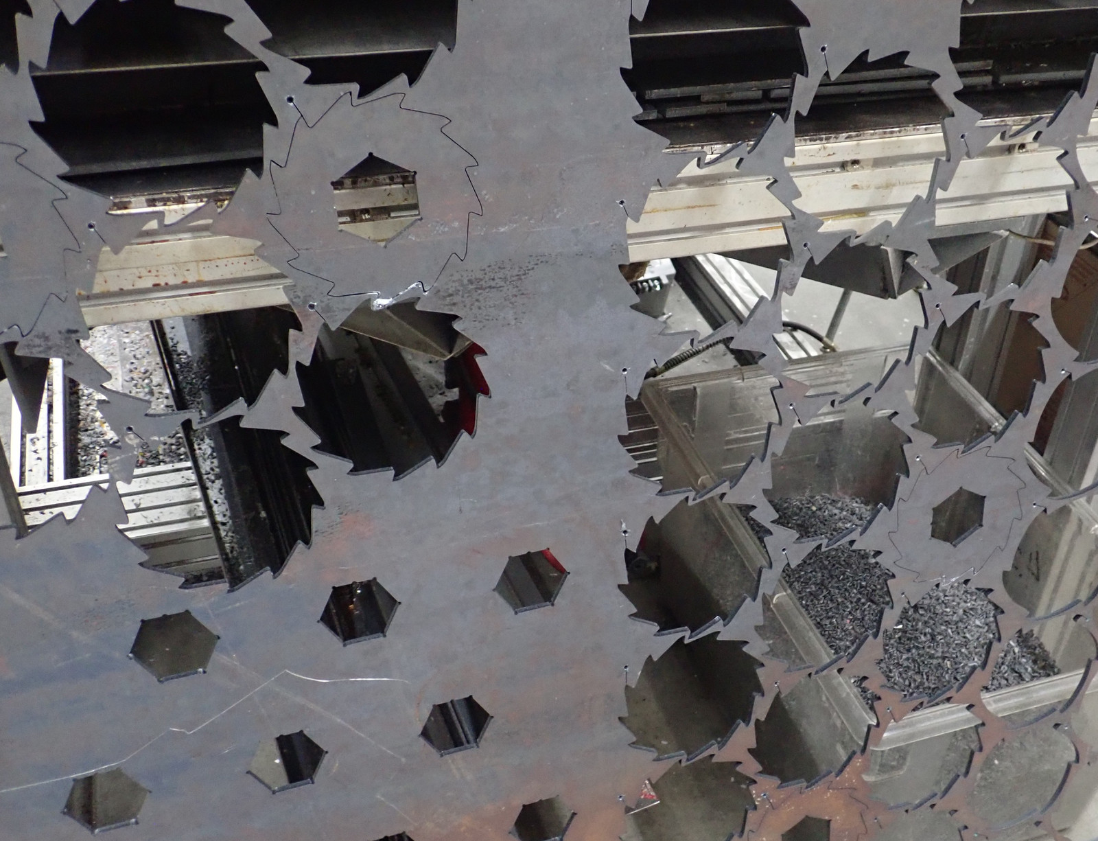 These pieces get assembled into the business end of various grinders. It’s literally just stacks of cut steel, in various shapes, some fixed, and some on a central shaft that spins with all the torque and turns large material into very tiny pieces.