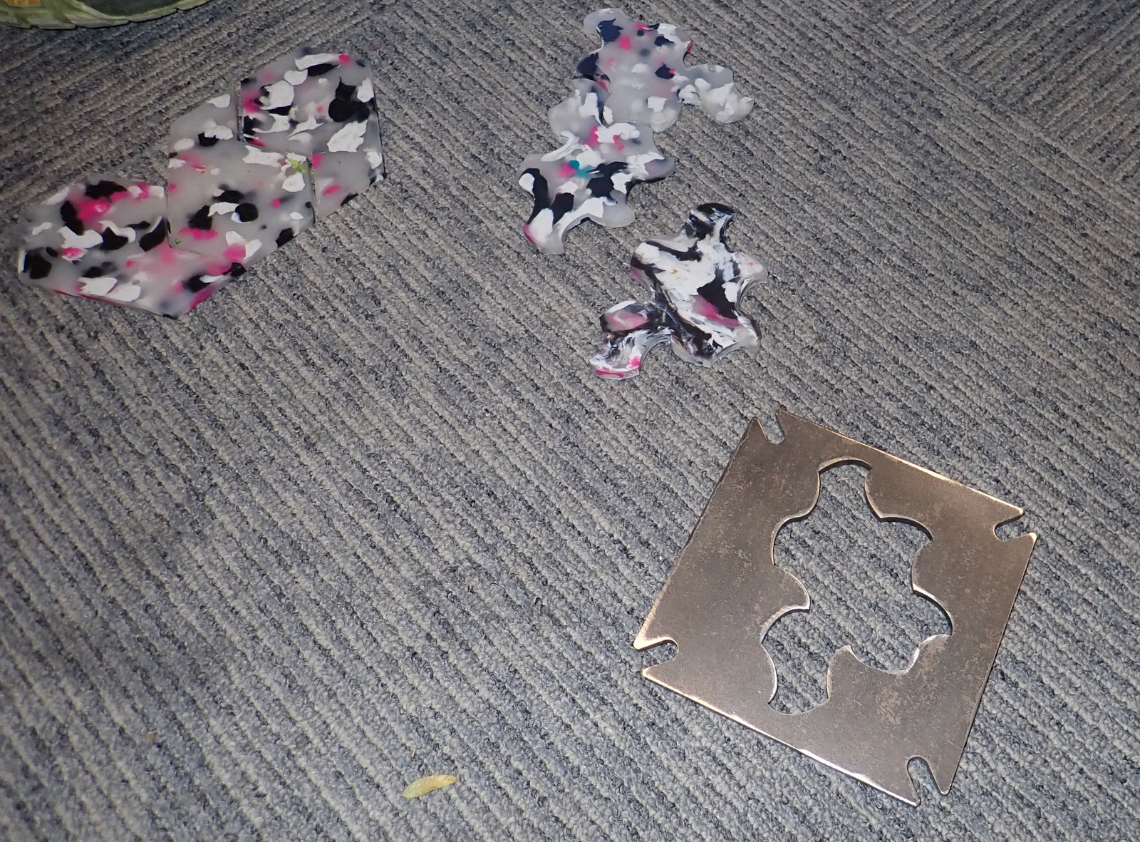 Frame the stuff, give it a coat of epoxy, and you’ve got either interesting coasters, or something that could be hung on a wall. Again, all of this is recycled plastic!
