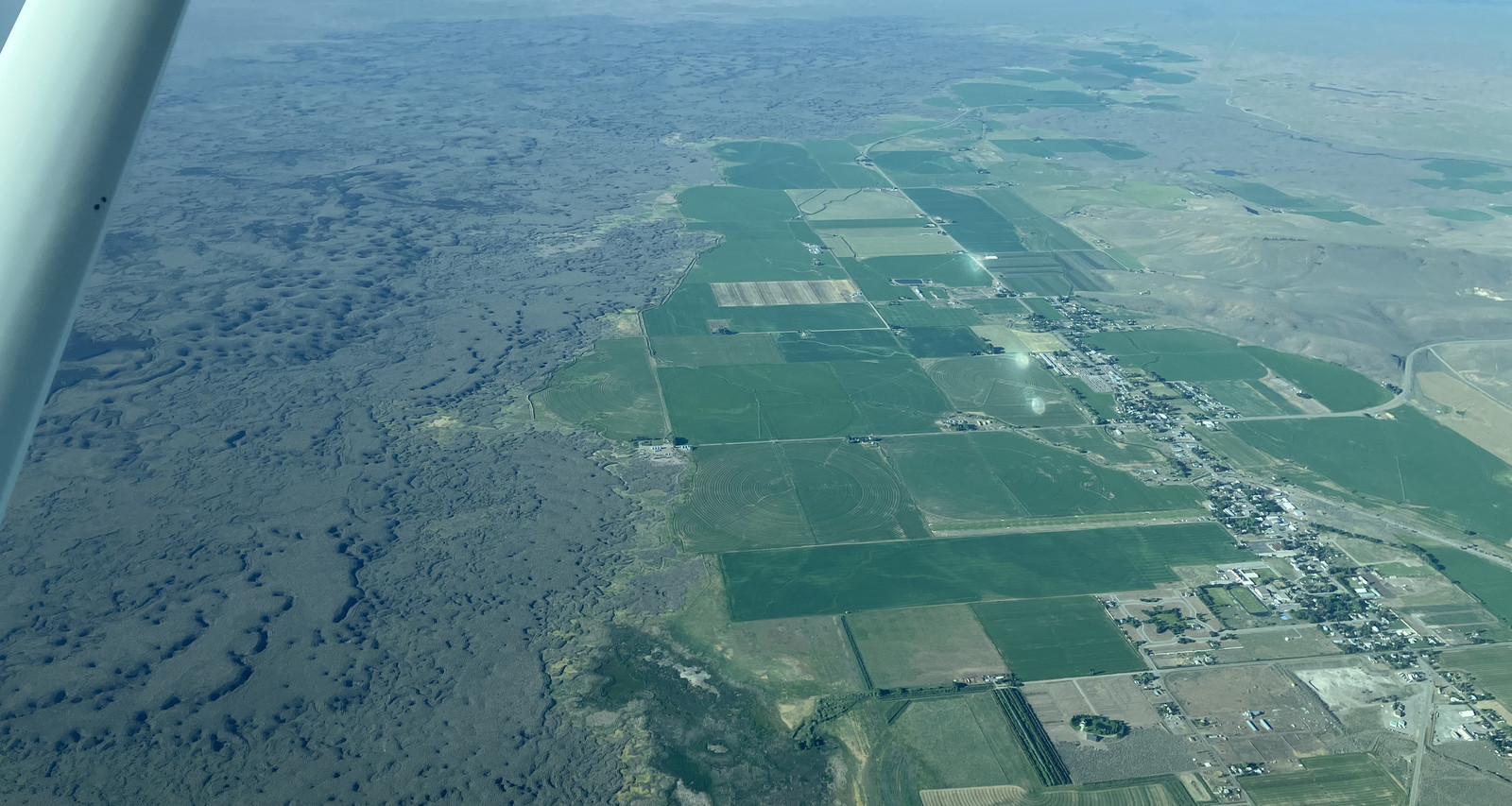I’ve not flown over Craters of the Moon before. It’s an incredibly hostile lavascape in eastern Idaho, and it lives up to its name. You’re going along, and all of a sudden the ground turns into a lava spread. However, my understanding is that the basalt does some very good things to soil fertility, so you see farms right up to the edge of it!