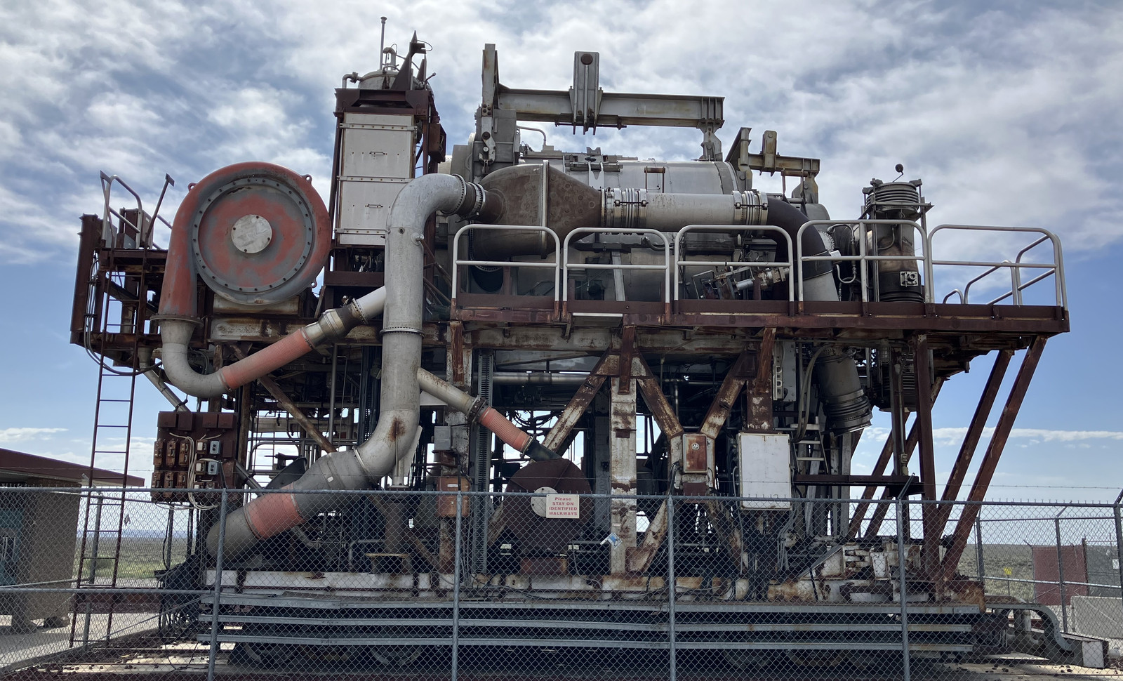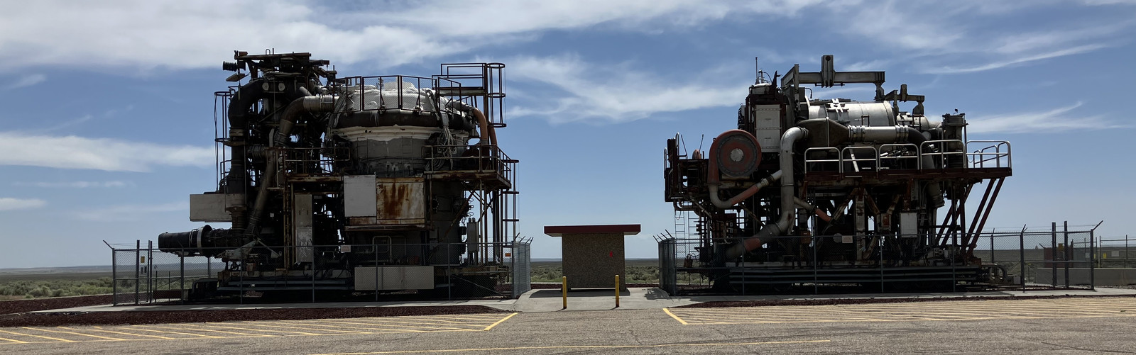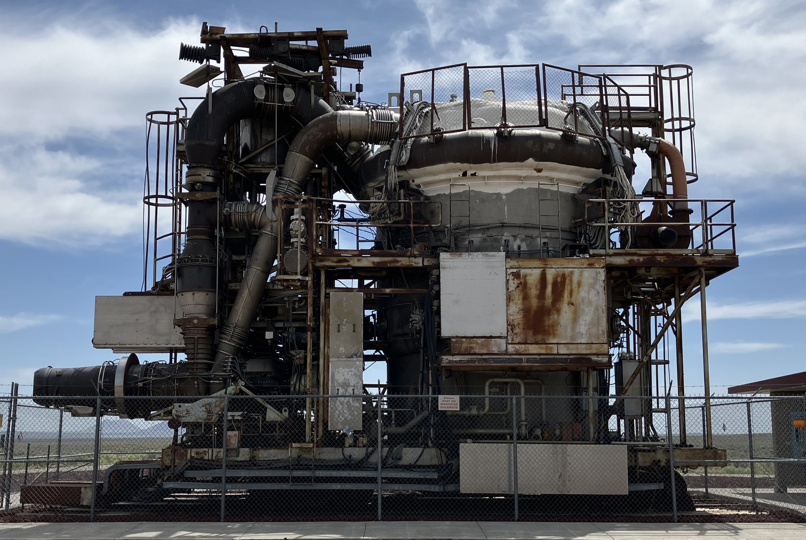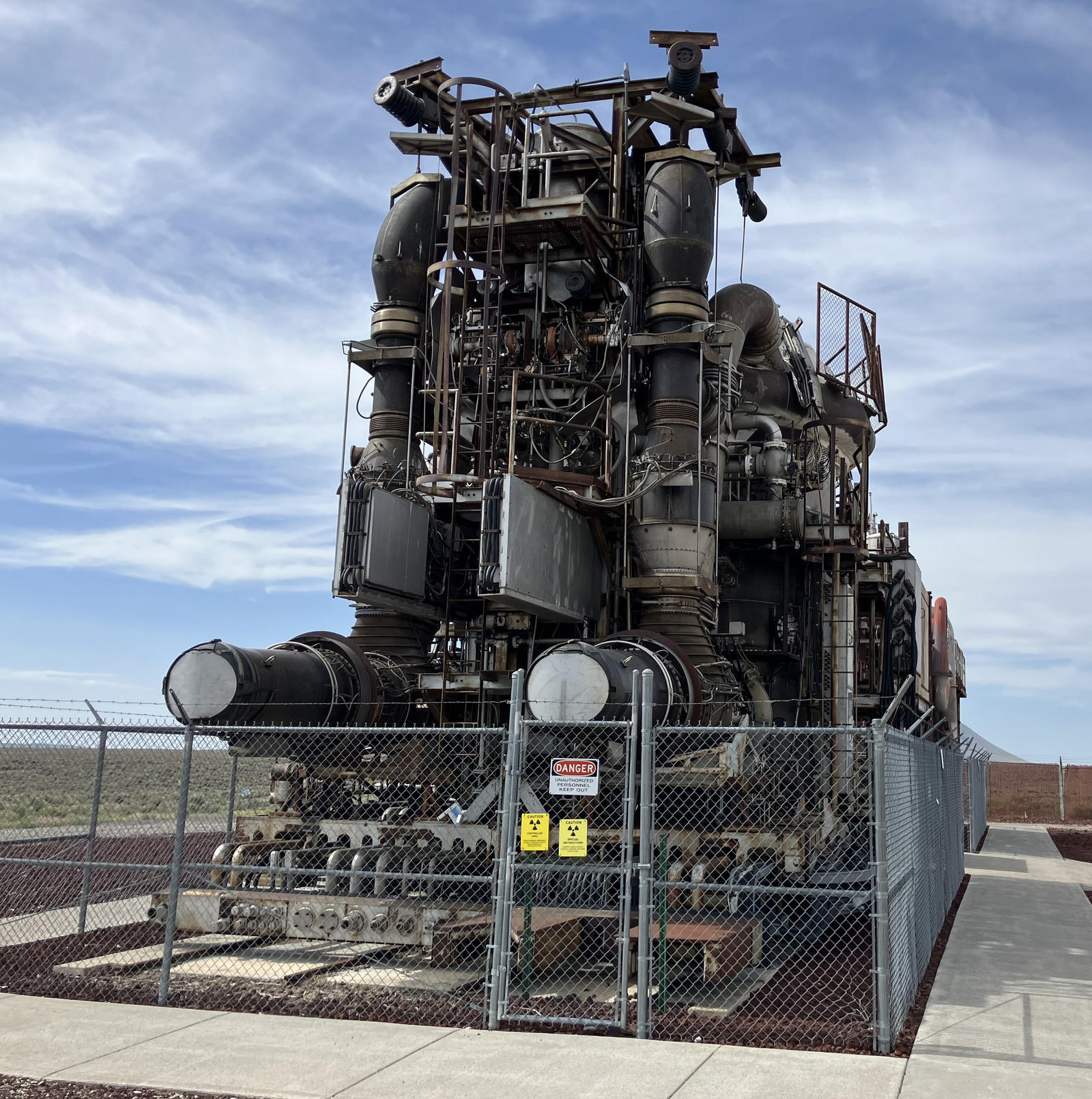 Most images of the HTREs you’ll find online only show the two bits of actual machinery. On the right is HTRE-1, which was later turned into HTRE-2 (for high temperature materials research). On the left is HTRE-3, which is still in the “nuclear powered jet engine” configuration. Or so the signs say. But I’m actually somewhat convinced the signs are wrong, that HTRE-1 is on the left (with the jet engines still attached), and HTRE-3 is on the right, with the jet engines missing. I’ve found too much documentation that contradicts the signs on the fences while trying to better understand these bits of machinery, and the descriptions of the cores just don’t match, so I say HTRE-1/2 is on the left, and HTRE-3 is on the right - which is also what some of the other signs say.
