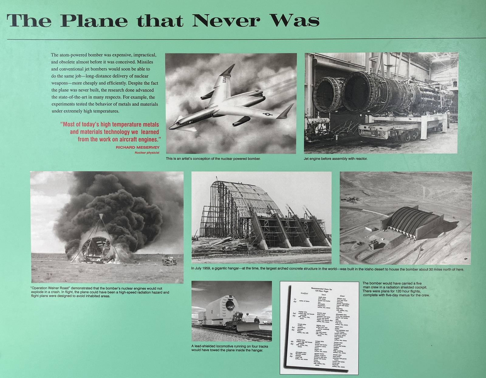 At the time, “nuclear reactors” seemed a good solution to a lot of problems, and so it didn’t take long before someone reasonably enough asked, “What if we made a nuclear powered aircraft?” You wouldn’t have the range limits of having to carry jet fuel around, and you could, in theory, go as fast as you wanted, as long as you wanted (or for whatever the thermal limits of your airframe dictate).