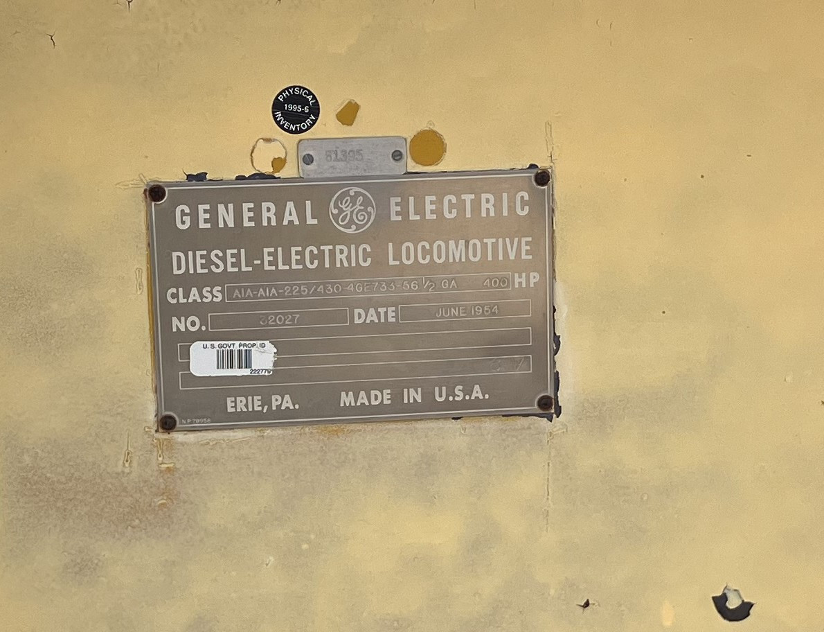 This is a General Electric Diesel-Electric Locomotive, Class AIA-AIA-225/430-4GE733-56 1/2 GA, if you happen to be able to decode that. Number 32027, manufactured in June 1954.