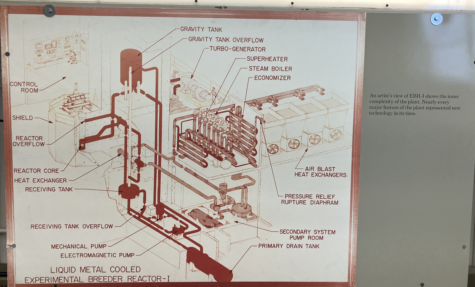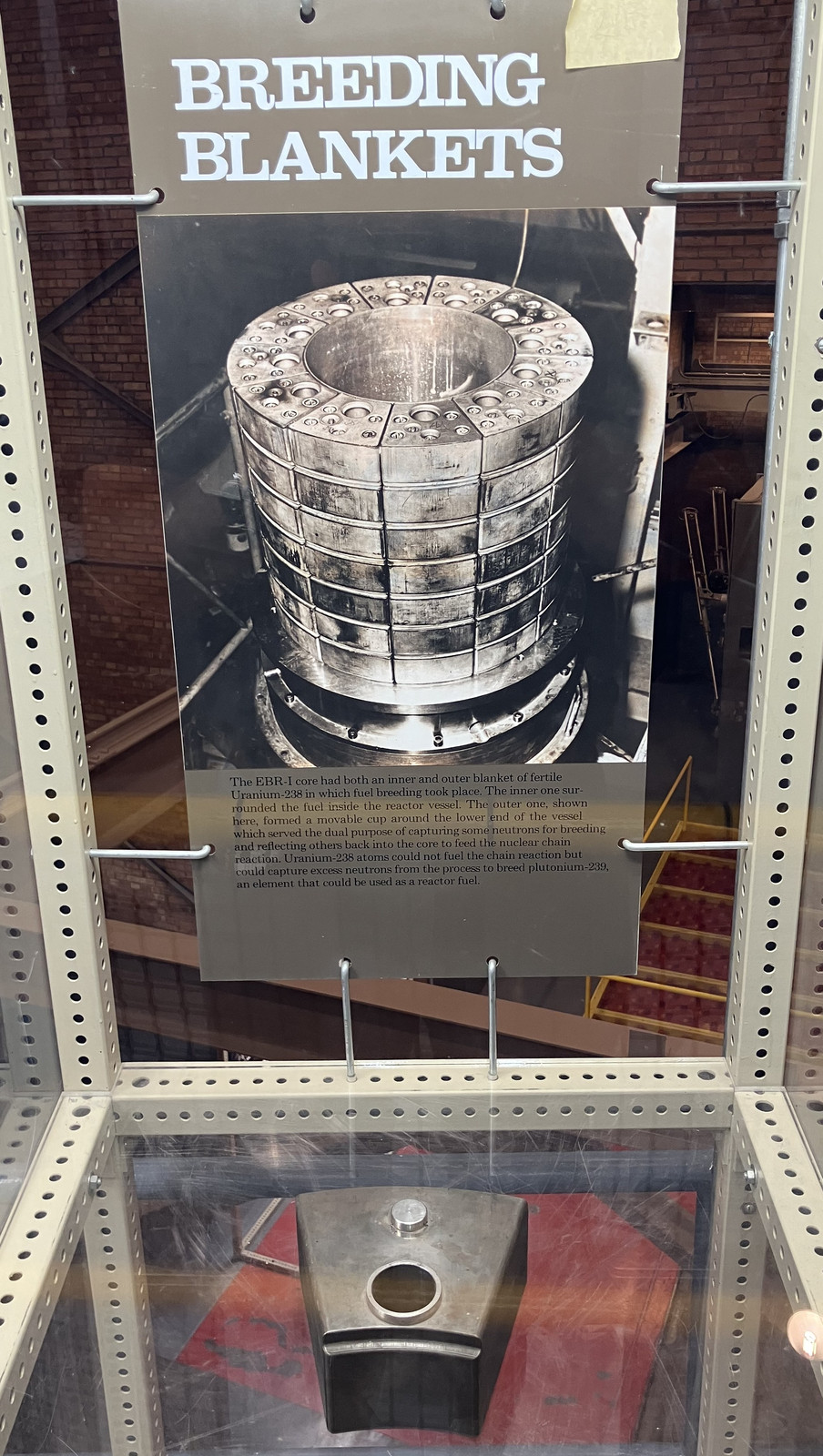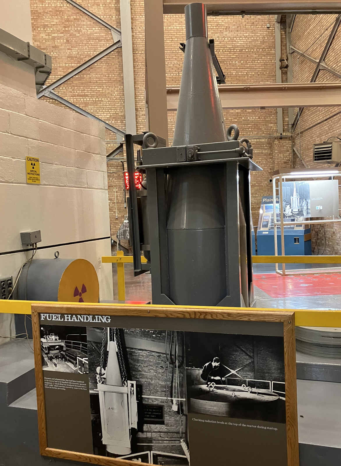 Where else can you go to stand on the lid of a nuclear reactor? In operation, the center had a lead plug in it, but they’ve replaced it with some layers of plexiglass (or lead glass… something mostly clear!) so you can see down to the top of the actual reactor. This area has some displays of fuel rods and the breeding blanket as well. If it looks like there isn’t a massive pile of bolts securing the lid down, remember that a liquid metal reactor isn’t a pressurized water reactor - the coolant doesn’t operate under pressure, so you don’t have hundreds of psi to hold back. The lid shouldn’t go anywhere, but you’re not maintaining high pressure water in liquid form.