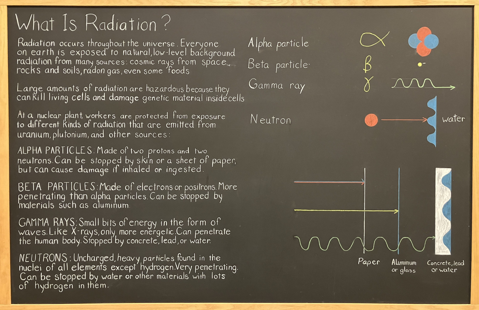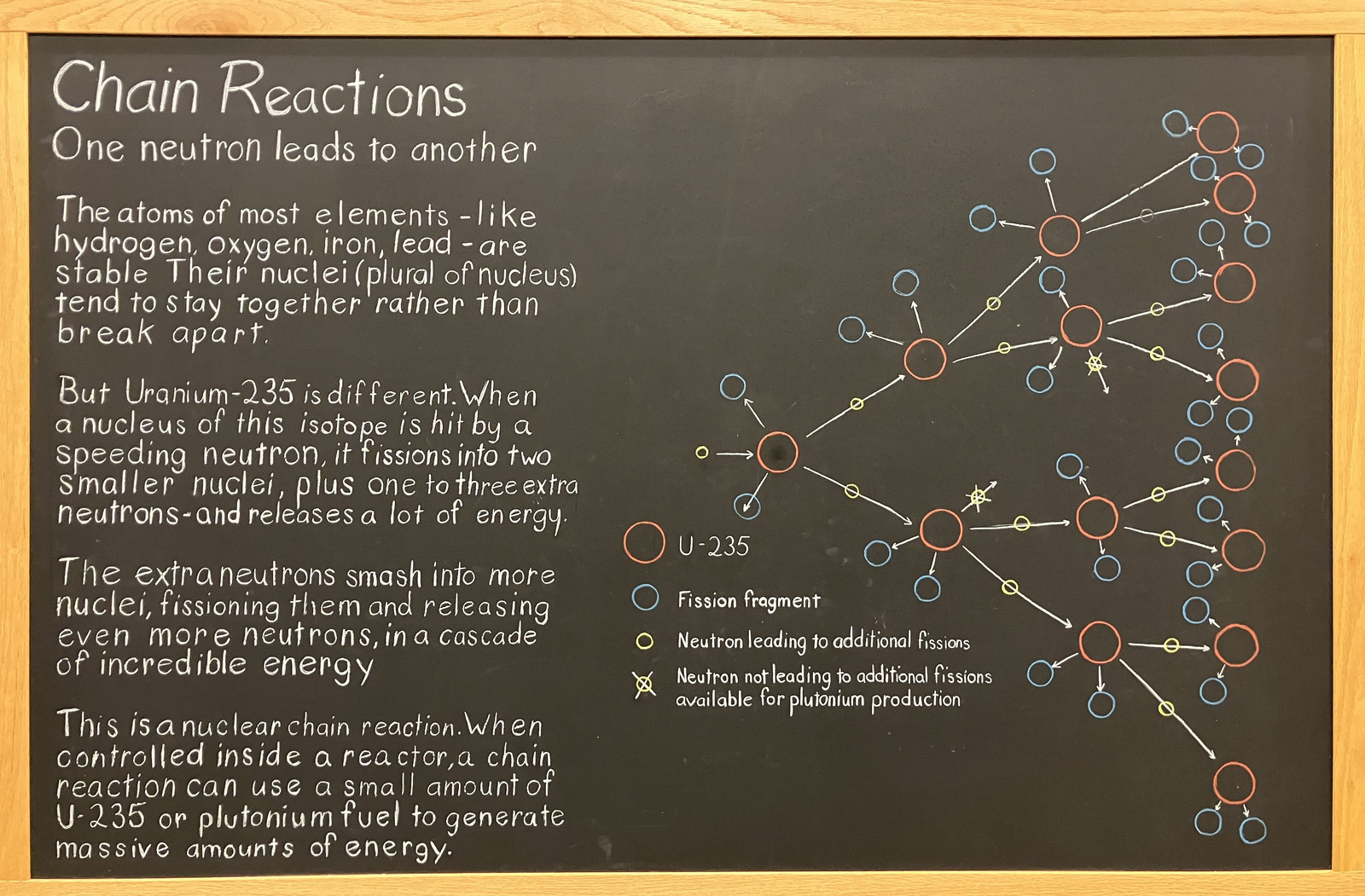 Scattered around the tour were random blackboards with some amazingly done explanations of radiation, nuclear chain reactions, and other aspects of relevance to understanding this museum. They have been done, as far as I could tell, in chalk, by someone with very good handwriting. Something immediately obvious in this building and the structures within is the sheer mass of them. The walls are thick. The windows are thick. The sliding doors are thick. All of them have to be this way to keep the radiation coming from the reactor where it belongs. Alpha and beta radiation aren’t terribly difficult to deal with, but gamma radiation, or neutrons, just require mass. This is something to keep in mind when people talk about long term space travel - there’s a lot of gamma radiation in space.
