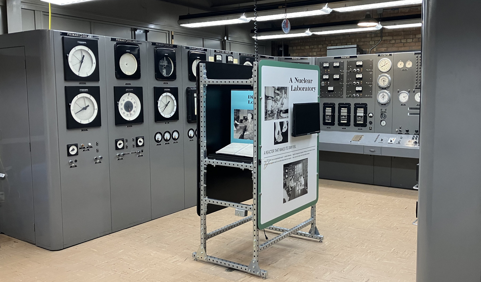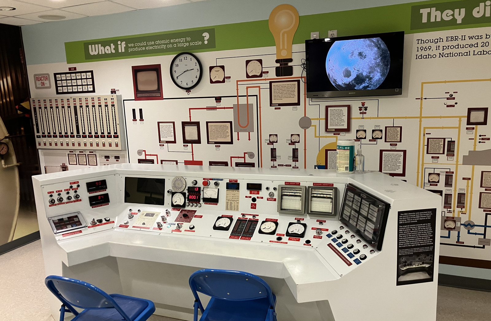 While not the “real control room” of EBR-I, they’ve got a decent looking replica control room, though it’s mostly intended to make the point that nuclear power is safe and reasonable.