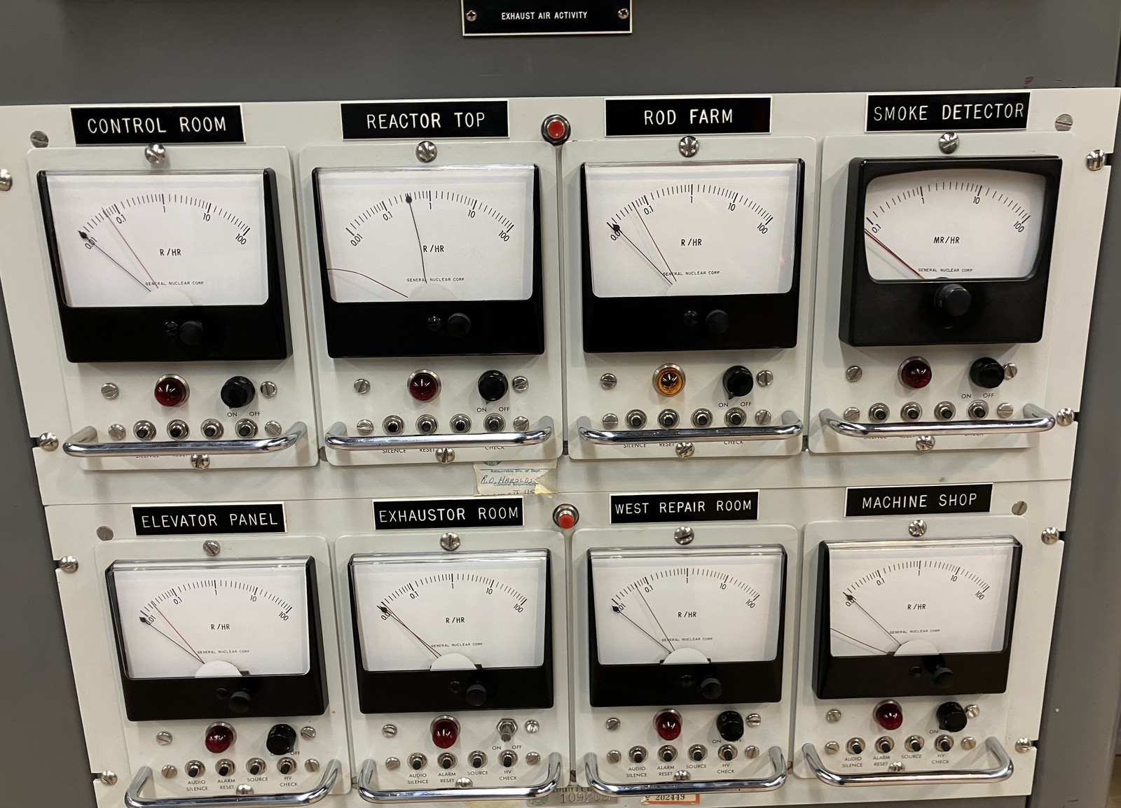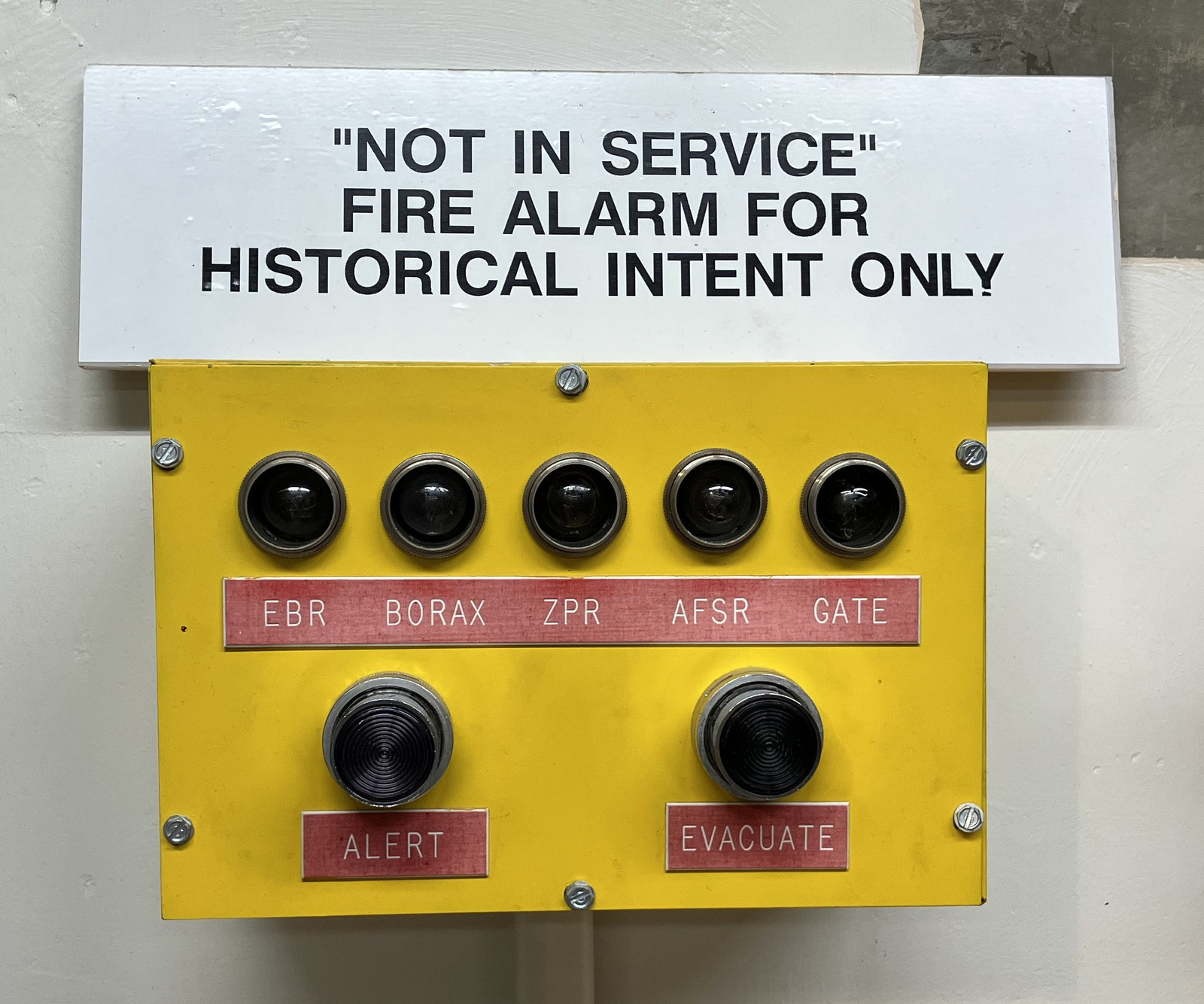 I believe, by the names of the lights, this is a “site wide alarm” system. EBR would refer to the EBR-I. BORAX refers to another set of reactors installed at the NRTS. ZPR, which I talk about briefly later, was a “Zero Power Reactor” in another building. AFSR would be the Argonne Fast Source Reactor. And “Gate” would be the guard gate.