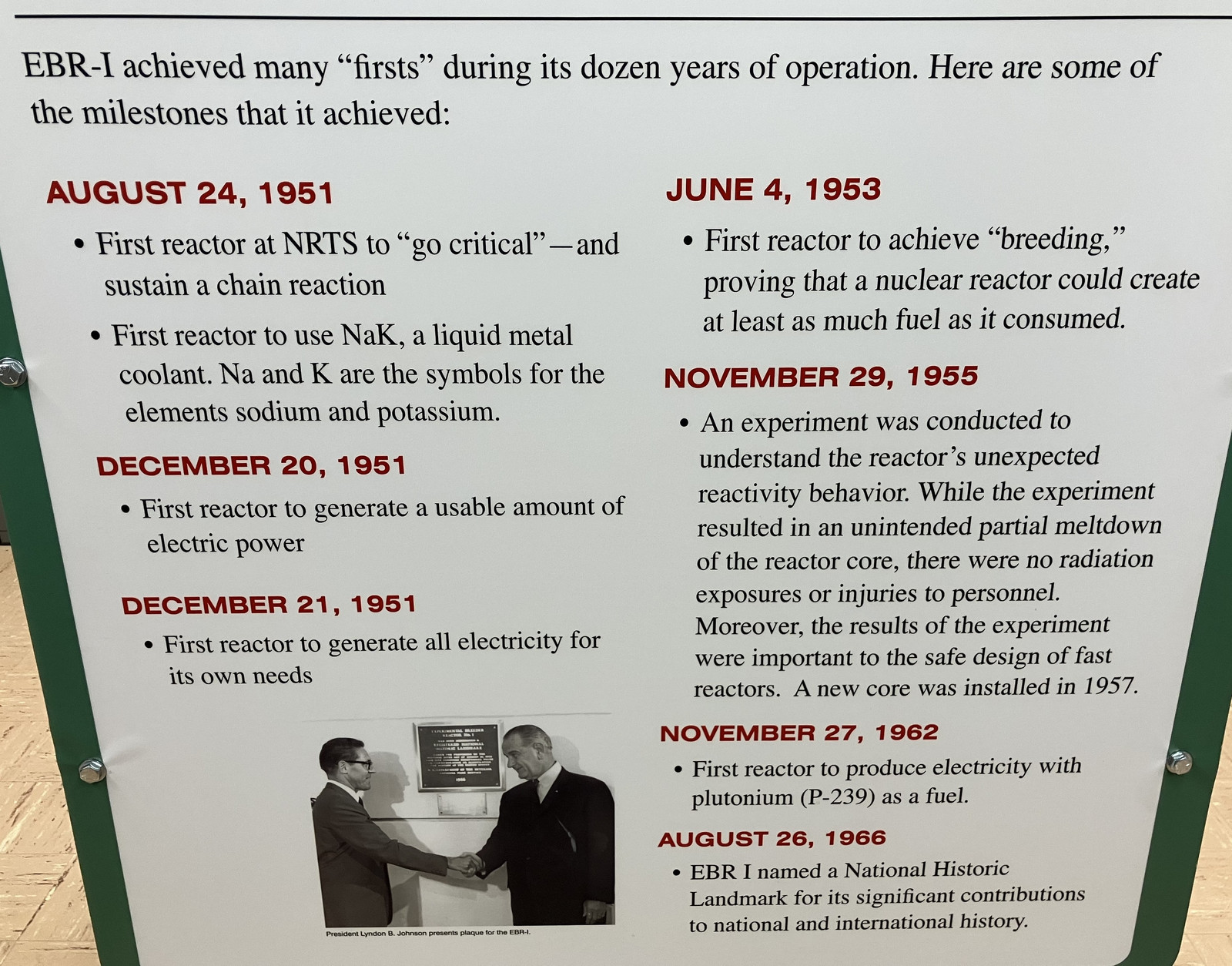 While some argue that EBR-I wasn’t the first reactor to make electricity (seemingly correctly), it was the first to make substantial amounts of power and to run its own operation with the generated power. As much as we consider “meltdowns” in the context of nuclear reactors a bad thing (and they are), they were pretty much just part of early experimental reactor designs, working out the sharp edges of a yet unknown physics. Failure, with zero consequences to people, and lessons learned, are good things - we see SpaceX attempting that sort of iteration on rockets with some impressive results, and some impressive slow motion videos.