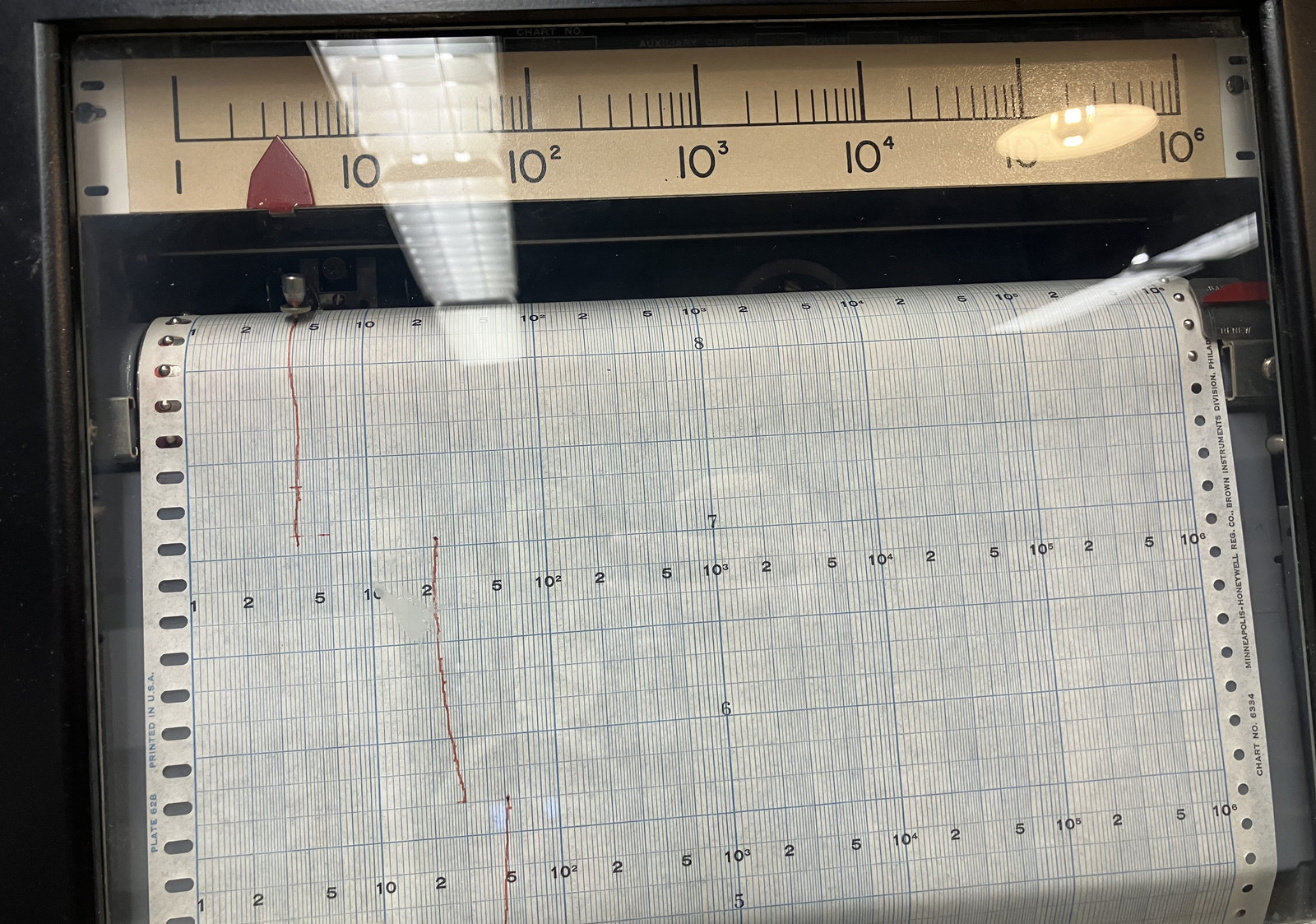 The control room has a range of plotters to log various parameters over time. I enjoy that this one is 6 orders of magnitude, though it wasn’t clear what exactly it was logging - probably output power.