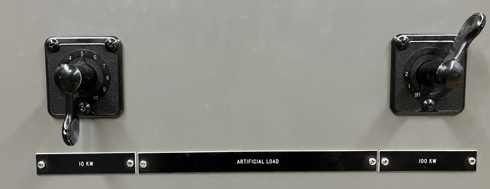 And, finally, how much load would you like? This is a nice little dial-a-yield bank in 10kW increments, from 0-300kW. With the turbine and generator spinning right outside the control room, I bet these switches can make an awful lot of noise when handled!